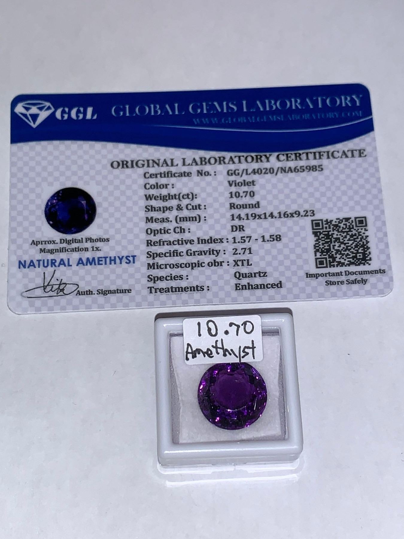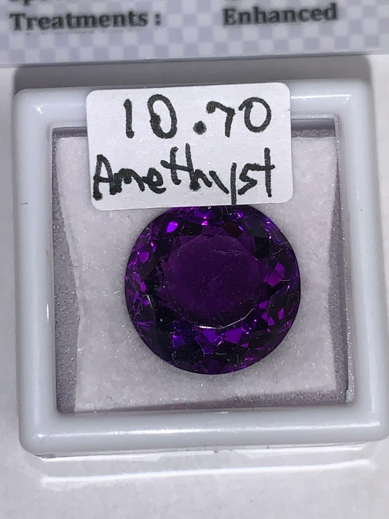 AMETHYST - Oversize violet round cut solitaire 10.70 Carat amethyst gemstone with certificate