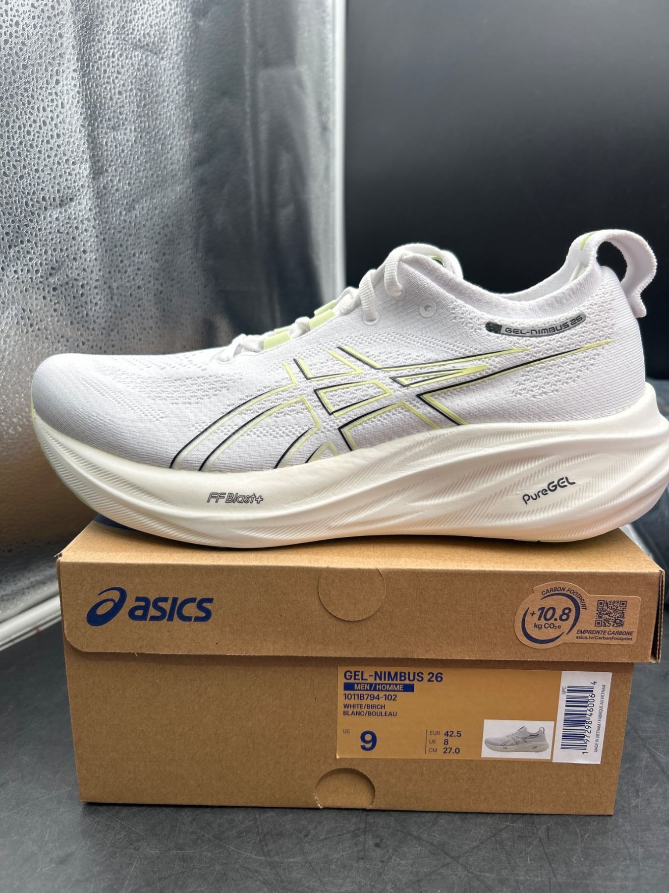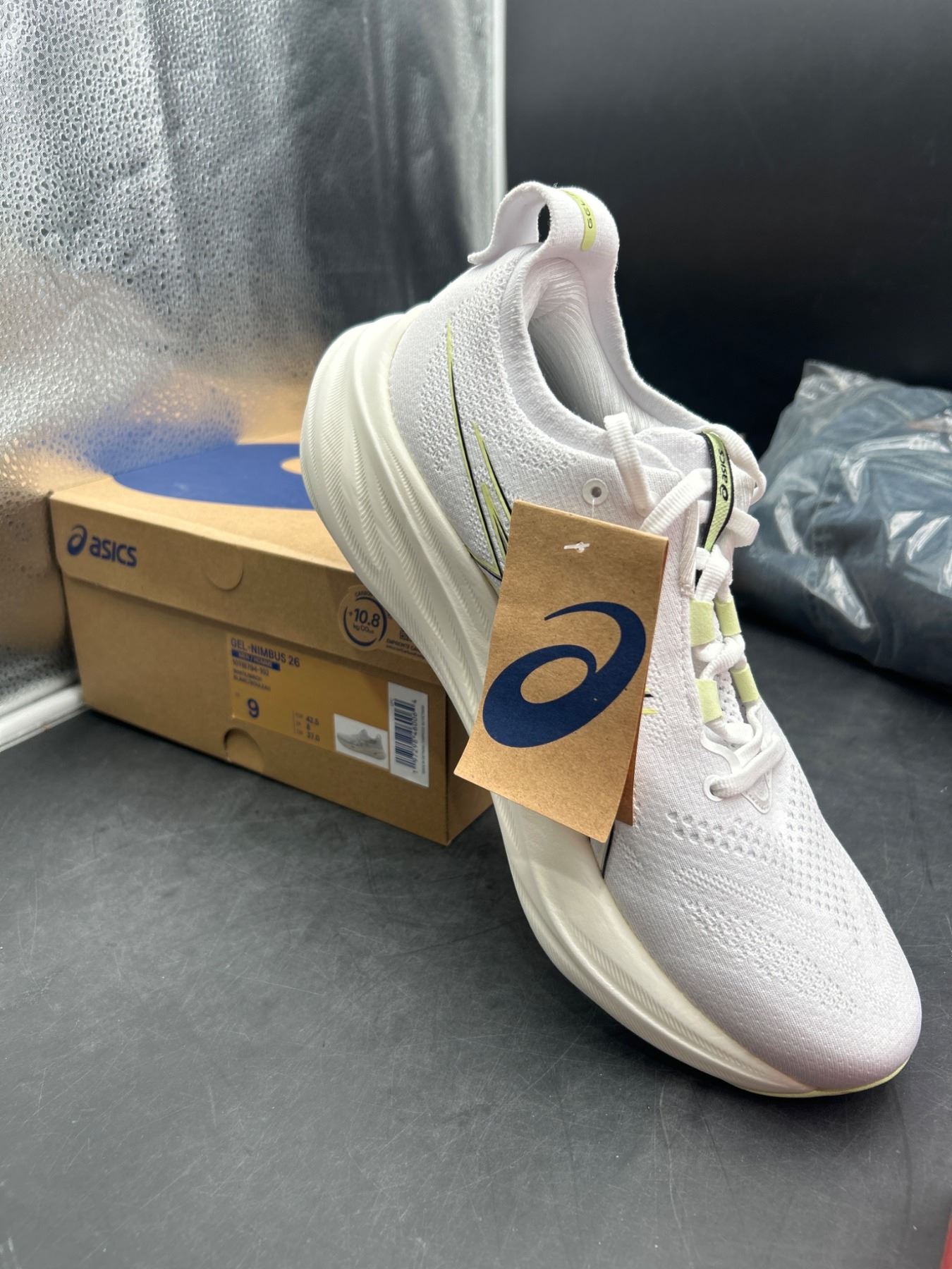 ASICS Gel-Nimbus 26 Running Shoes, Men’s Size 9, White/Yellow Design