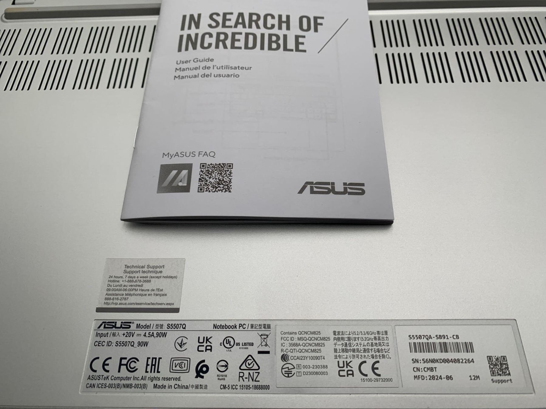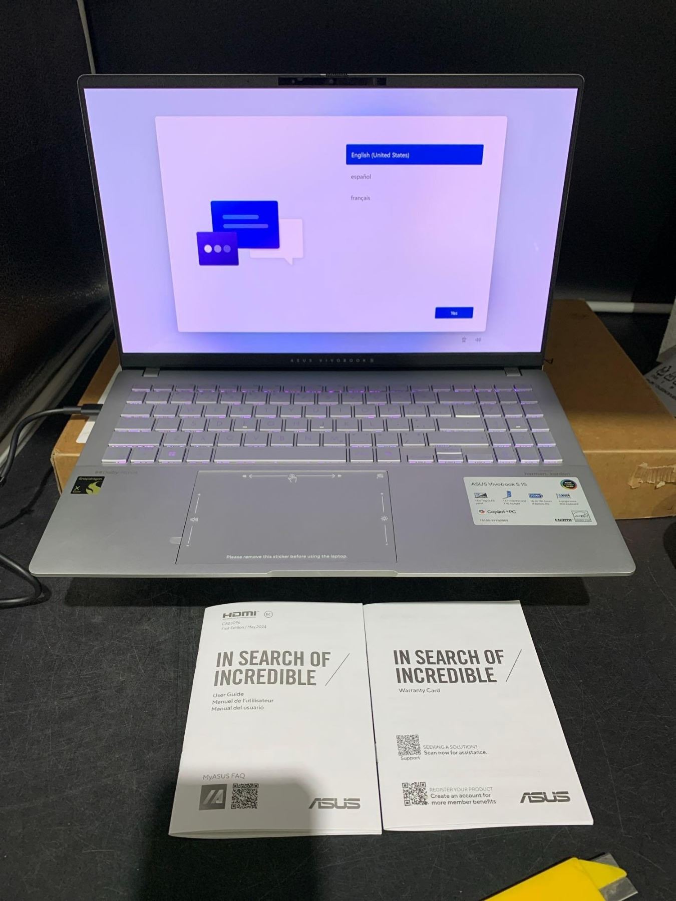 ASUS Model S5507Q Notebook PC Snapdragon® X Elite X1E 78 100 Processor 3.4GHz (42MB Cache, up to 3.4GHz, 12 cores, 12 Threads); Qualcomm® Hexagon™ NPU up to 45TOPS,  Qualcomm® Adreno™ GPU, 1TB,