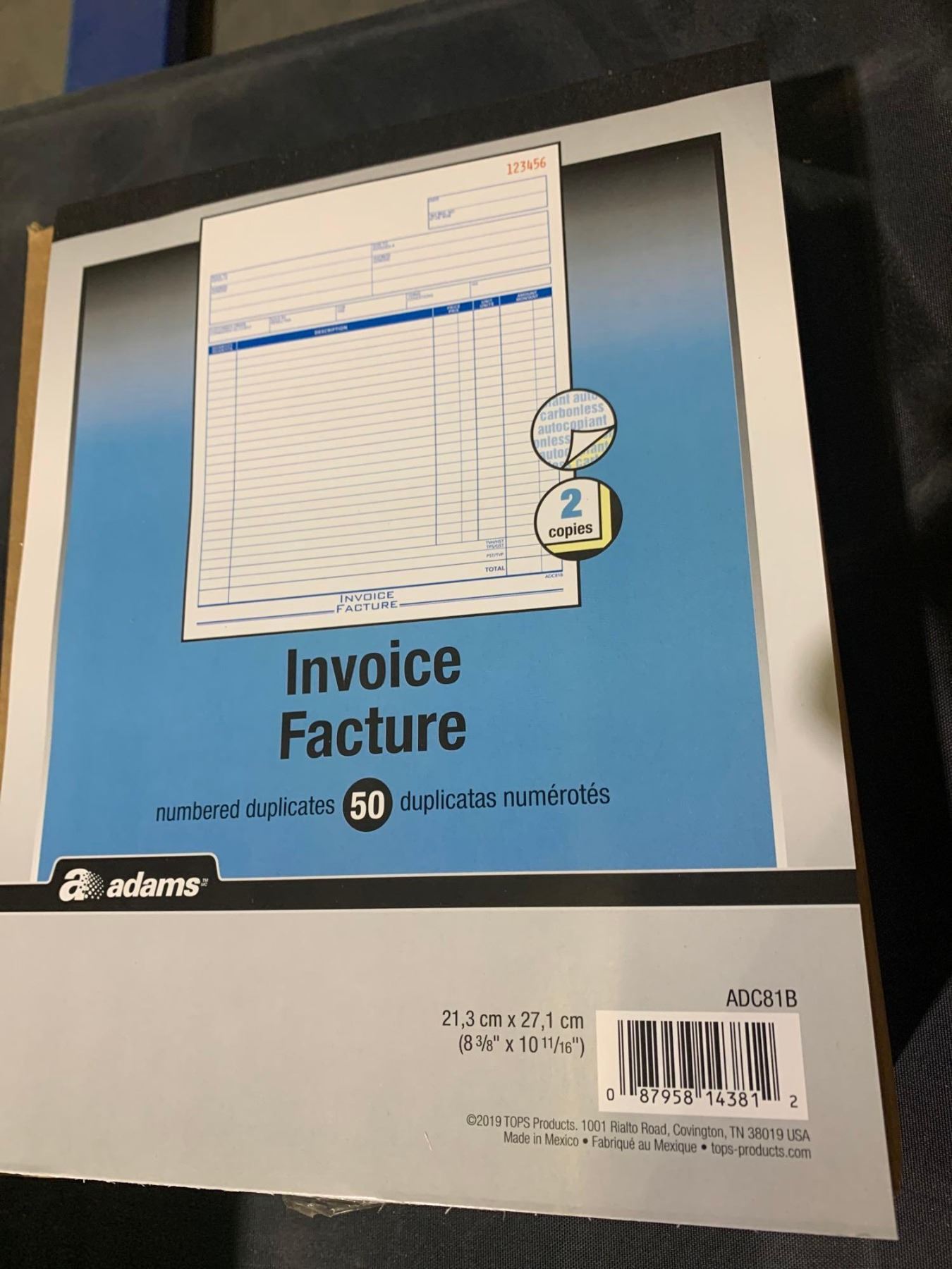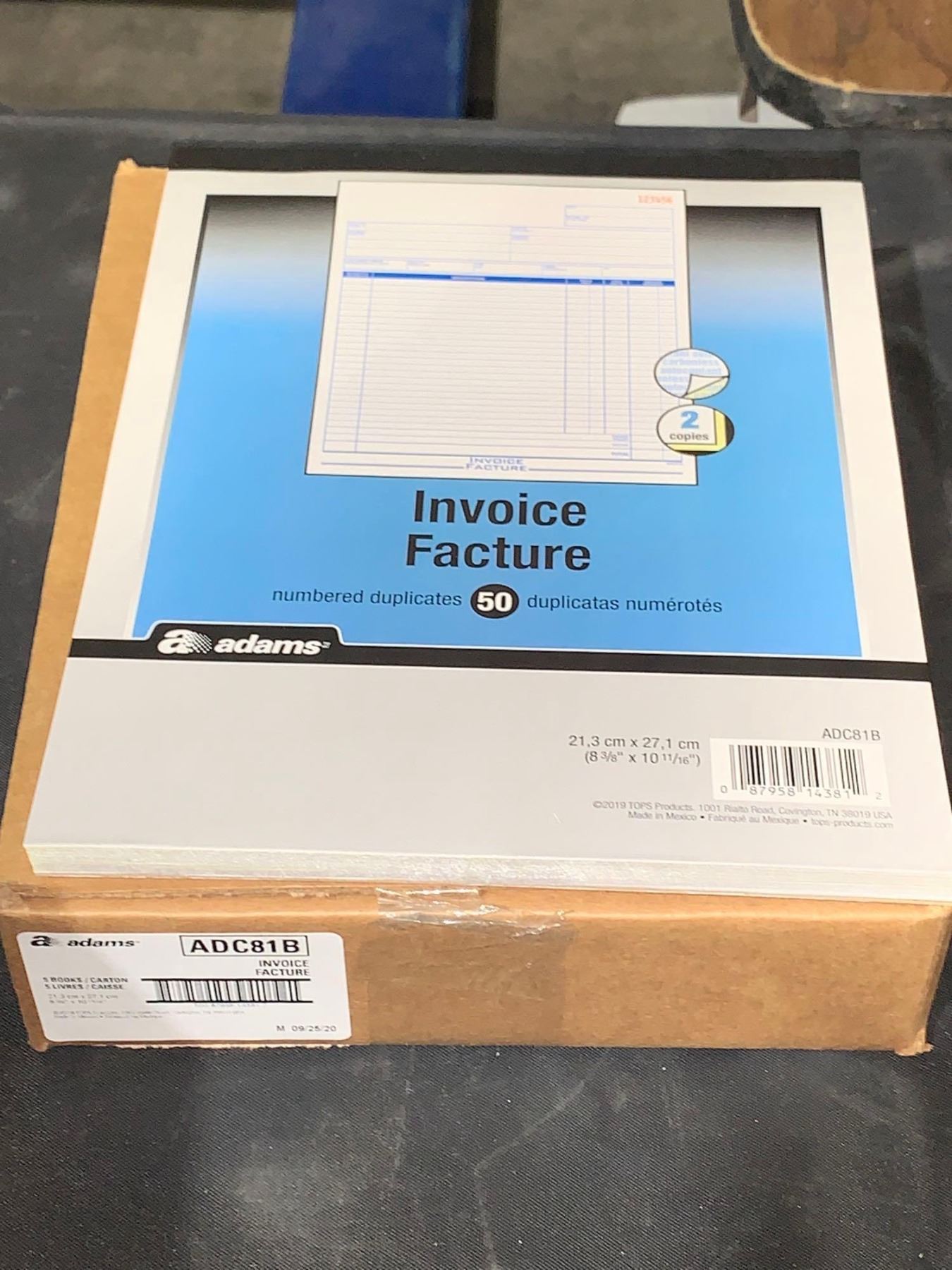 Adams 2 part numbered invoice books 8 x 10" - case lot of 5