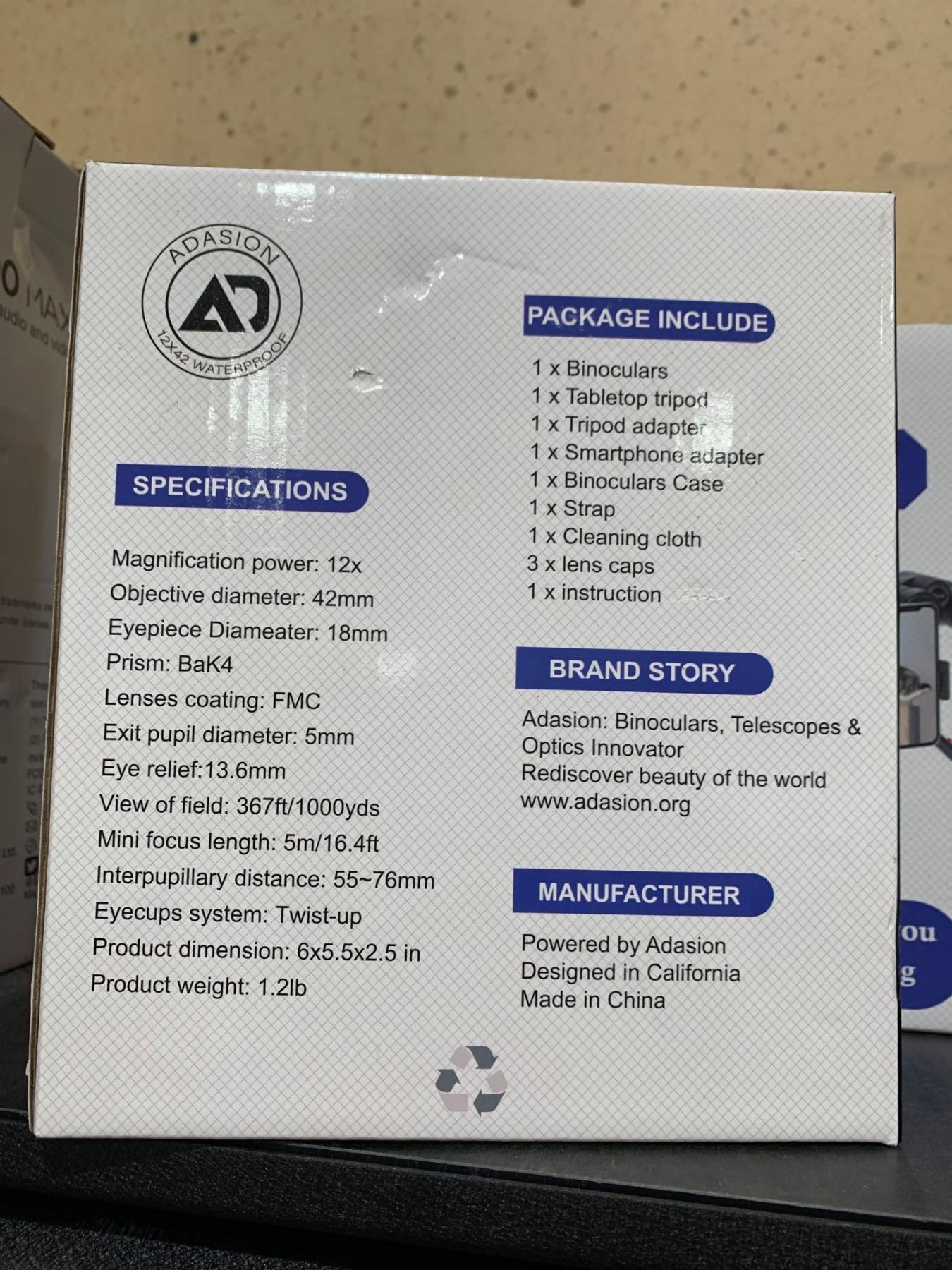 Adasion 12x42 Waterproof Binoculars with Phone Stand