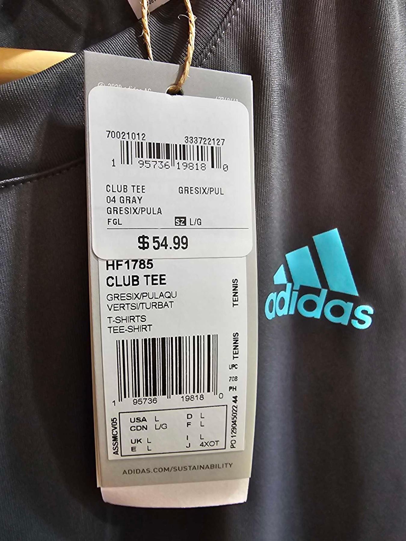 Adidas Club Tee - Gray Size Large