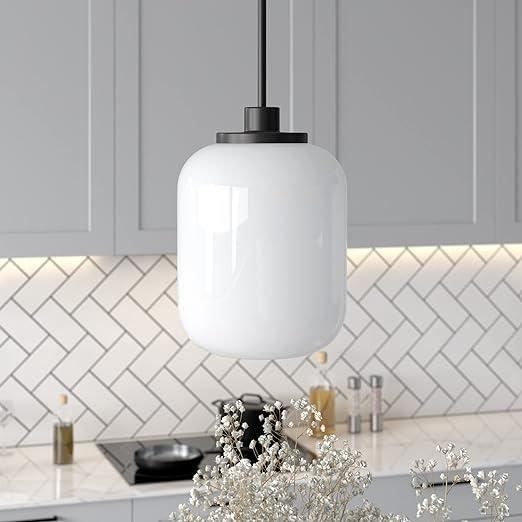 Agnolo 1-Light Blackened Bronze Pendant with White Milk Glass Shade