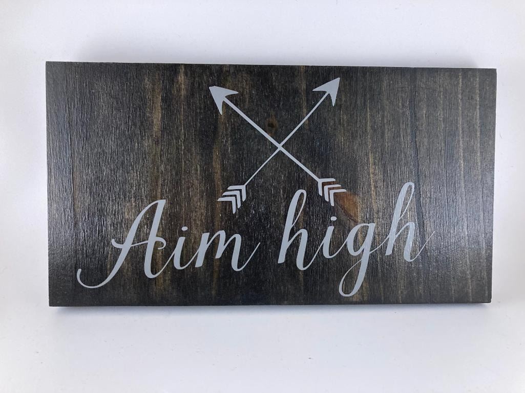 Aim High 6X12 Inches. Made of Pine. Hooks on Back