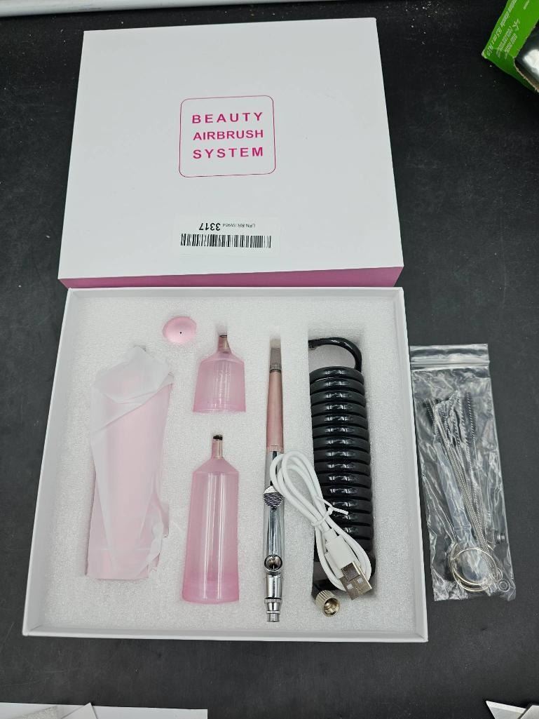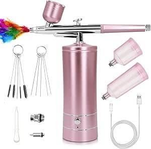 Airbrush Kit with Compressor, Air Brush Gun Rechargeable Portable High Pressure Air Brushes with 0.3mm Nozzle and Cleaning Brush Set for Painting, Tattoos, Nail, Makeup, Art, Cake Decorating (Pink)
