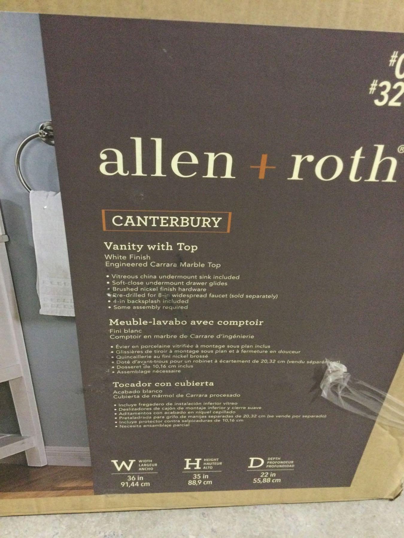 Allen Roth Vanity w/ Top (36in W x 35in H x 22in D)Â