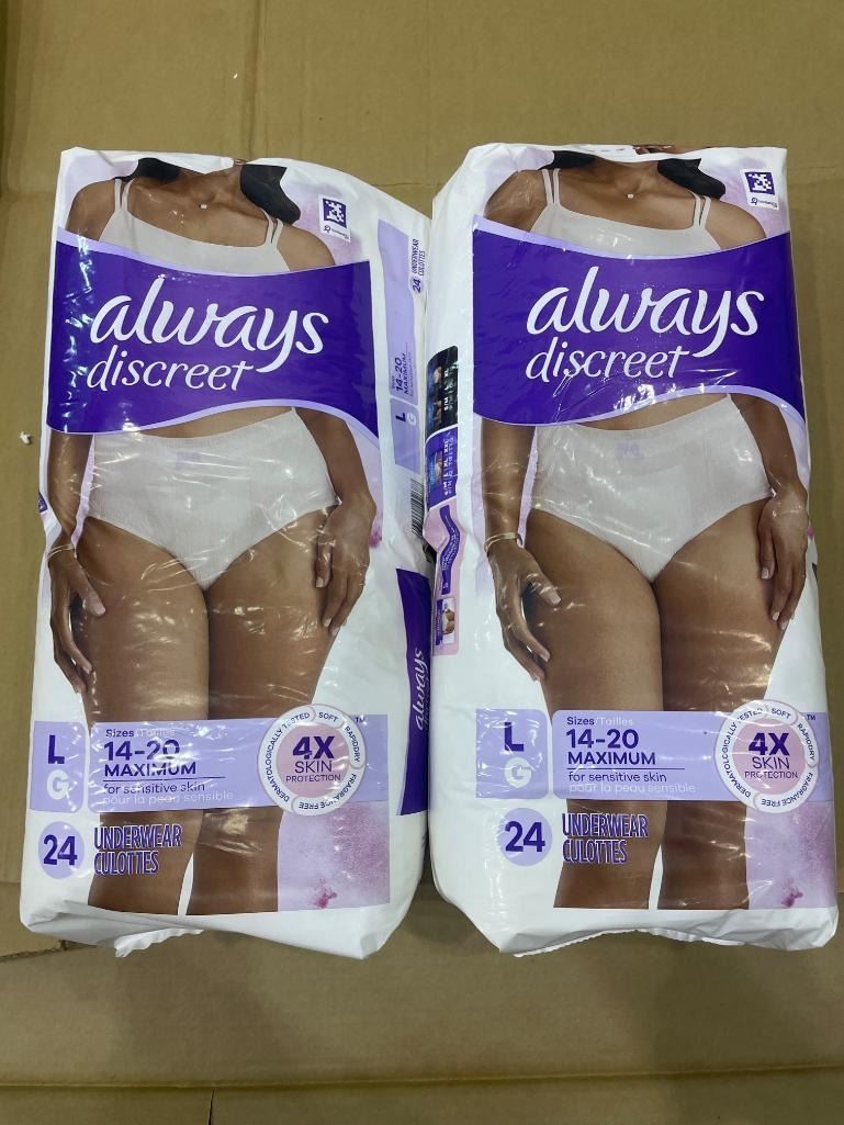 Always Discreet Women’s Underwear, Size L, 48 Total