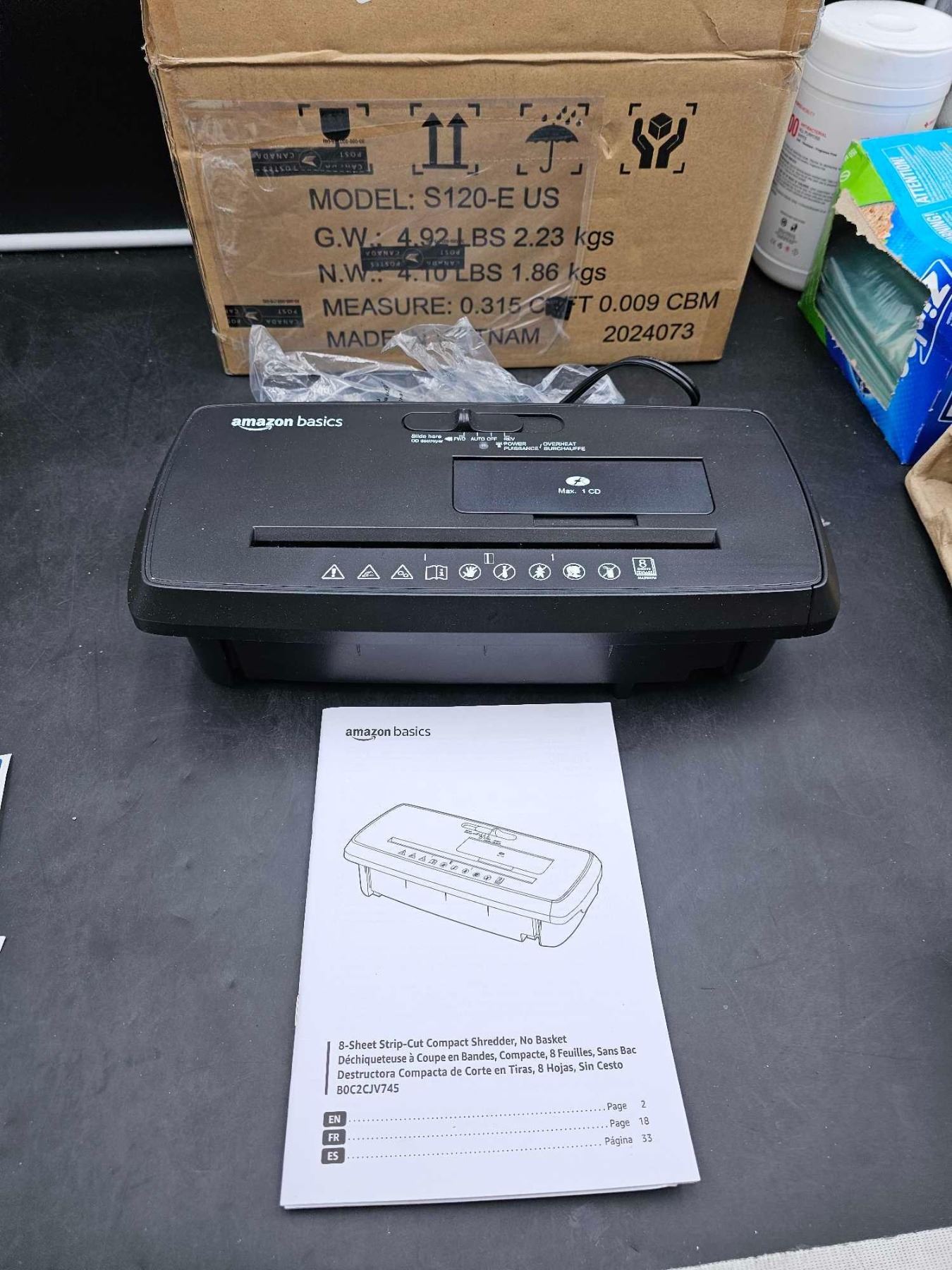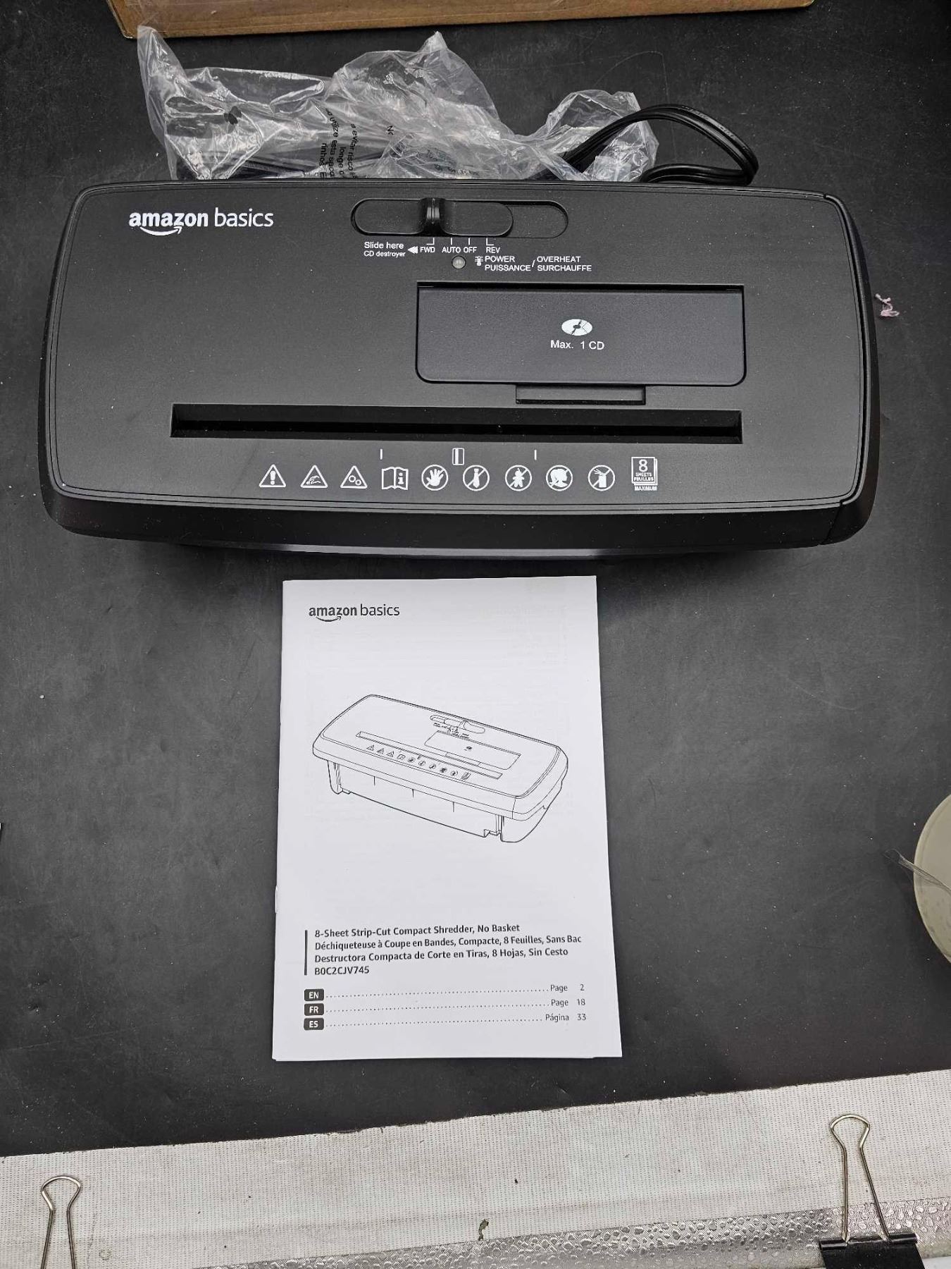 Amazon Basics 8 Sheet Strip-Cut Compact Shredder, no Basket