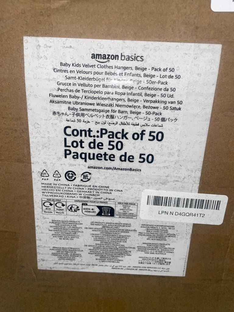 Amazon Basics Baby Kids Velvet Clothes Hangers, Beige, Pack of 50