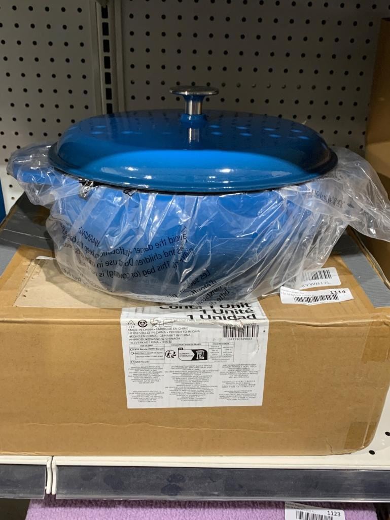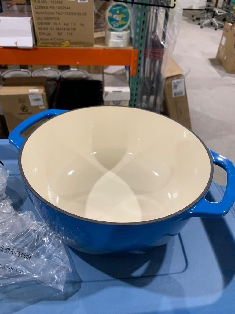 Amazon Basics Enameled Cast Iron Round Dutch Oven with Lid and Dual Handles, Heavy-Duty, 6-Quart, Blue