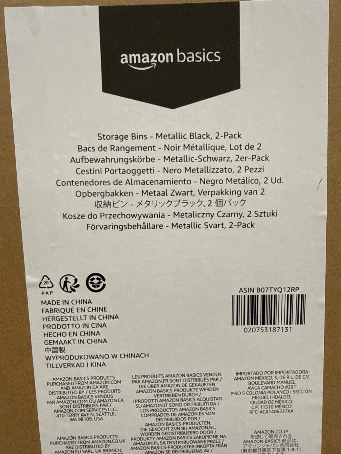 Amazon Basics Storage Bins - Metallic Black, 2-Pack