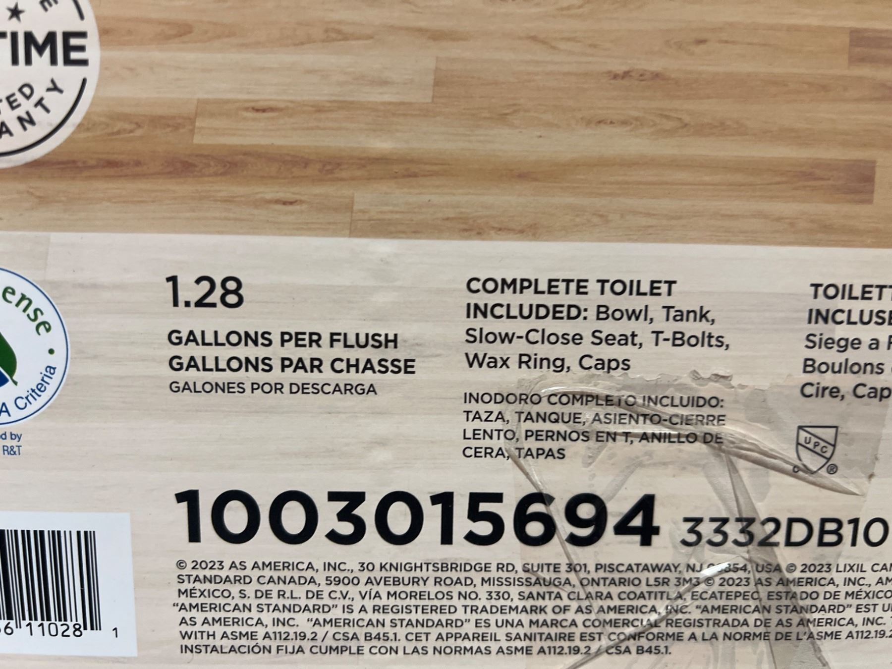 American Standard Toilet Model 1003015694 with 1.28 GPF and Round Front Bowl