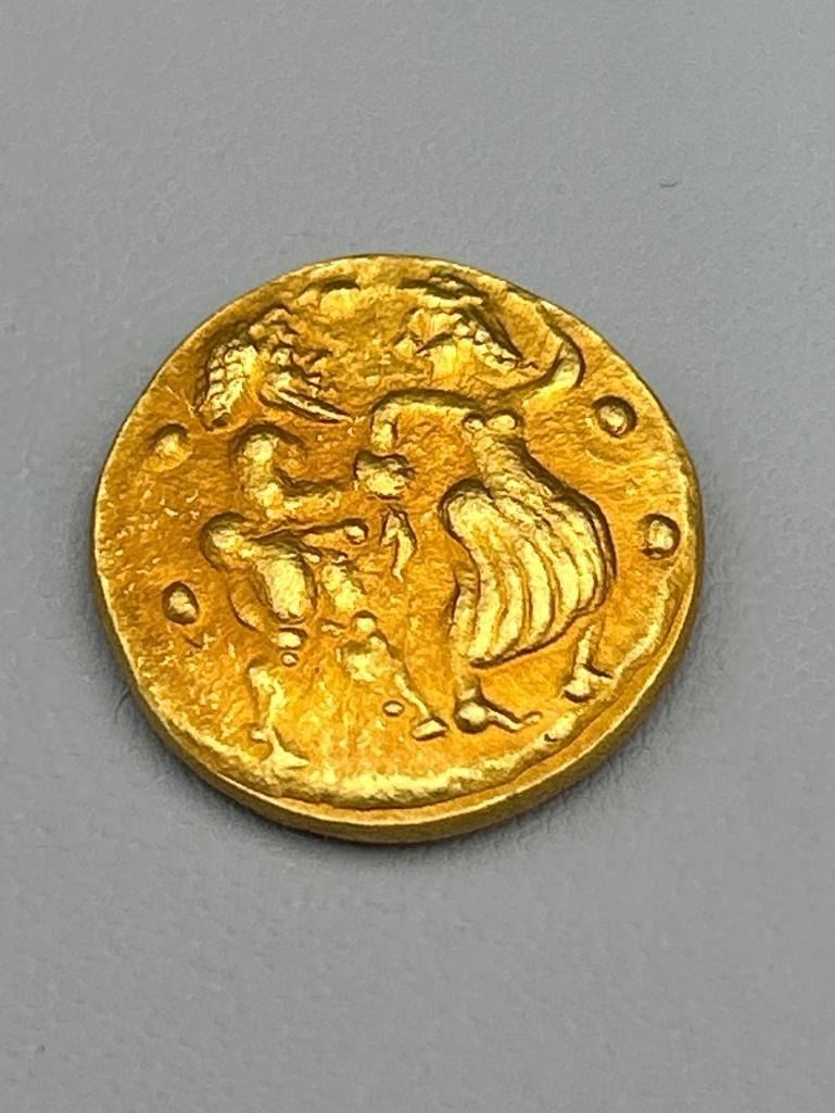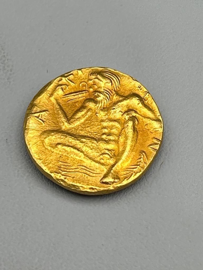 Ancient Gold Coin Featuring Classical Motifs