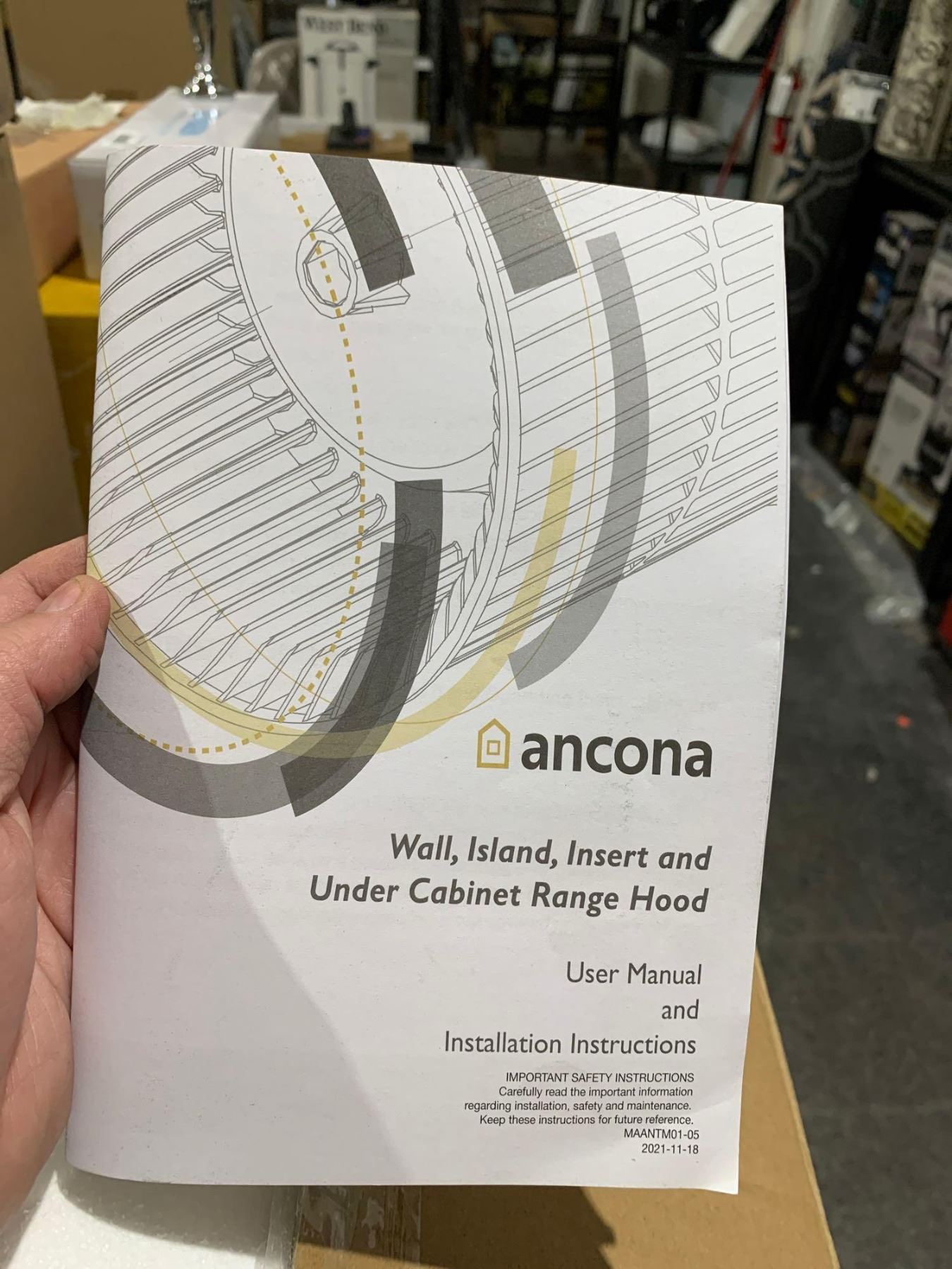 Ancona Wall, Island, Insert And Under Cabinet Range Hood  30.9" x 13.2" x 14.2"