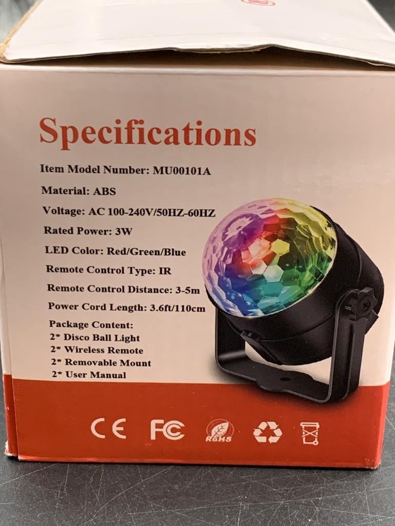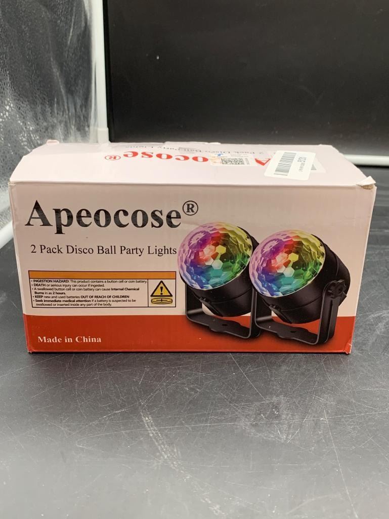 Apeocose 2-Pack Disco Ball Party Lights Sound Activated Remote Control Music Sync DJ Strobe Stage Lamp