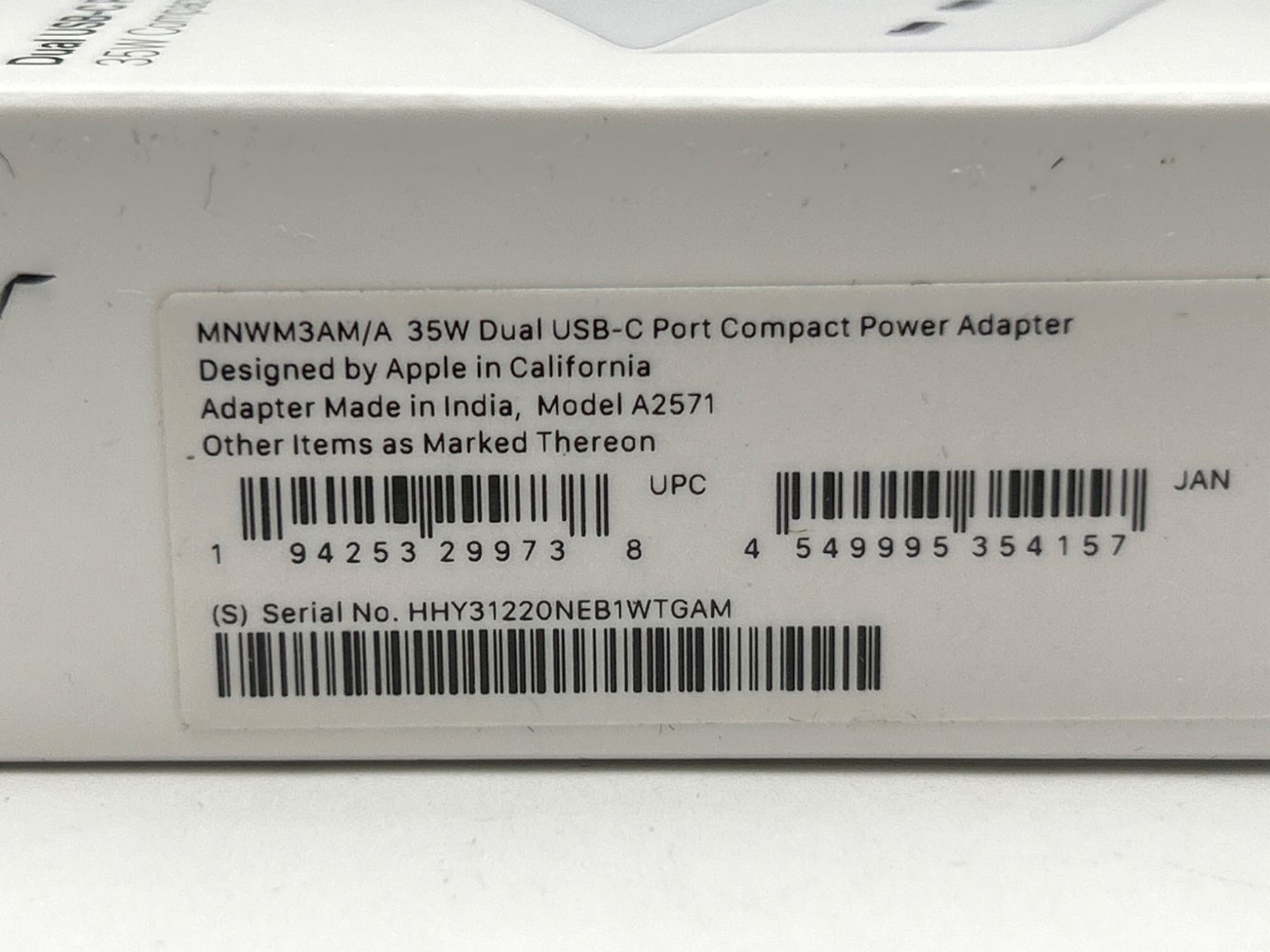 Apple Dual USB-C Port 35W Compact Power Adapter, Model A2571