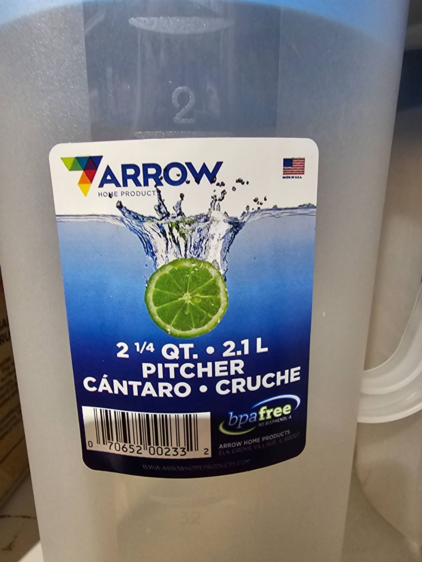 Arrow 2.1L/2.25 QT Plastic Pitcher With Blue Lid – Lot of 4