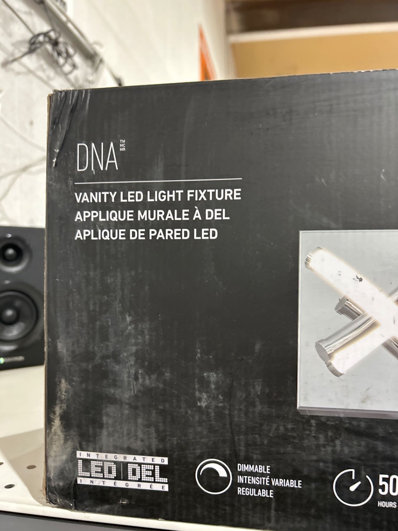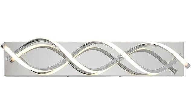 Artika DNA LED vanity light fixture, model VMPL18-92CH-002L5, featuring integrated LED technology. Dimmable with adjustable light intensity. Estimated lifetime of 50,000 hours. Suitable for wall installation with dimensions corresponding to the DNA configuration.