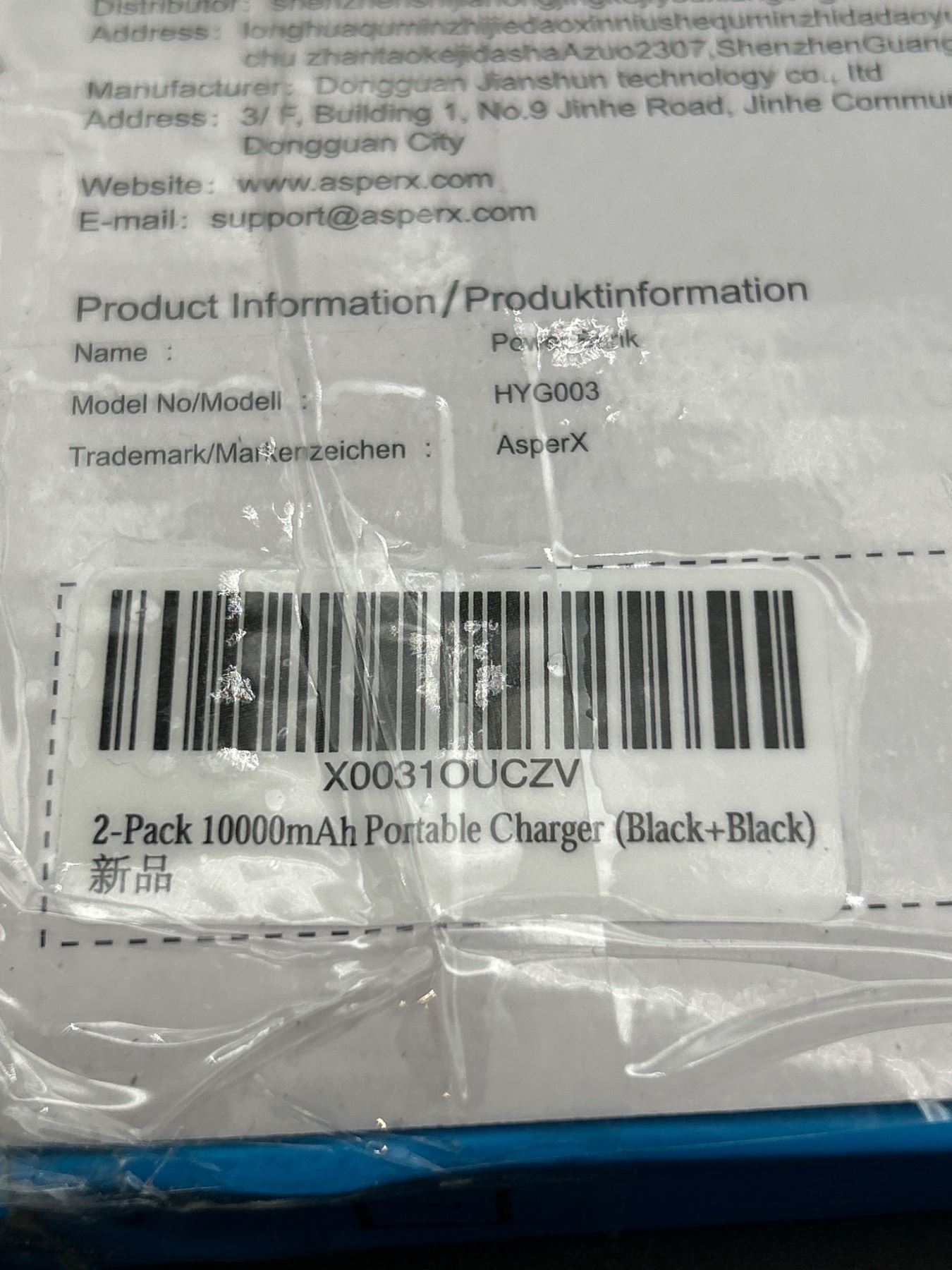 AsperX 2-Pack 10000mAh Portable Power Bank Model HY0003