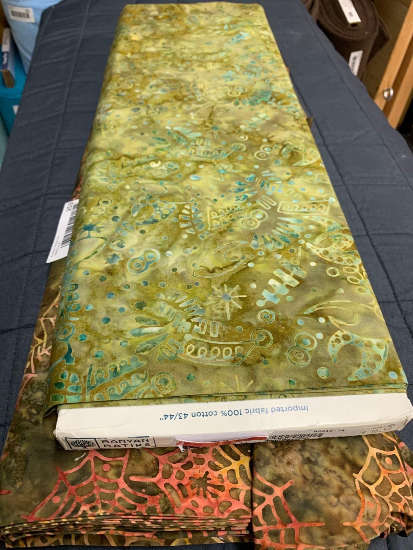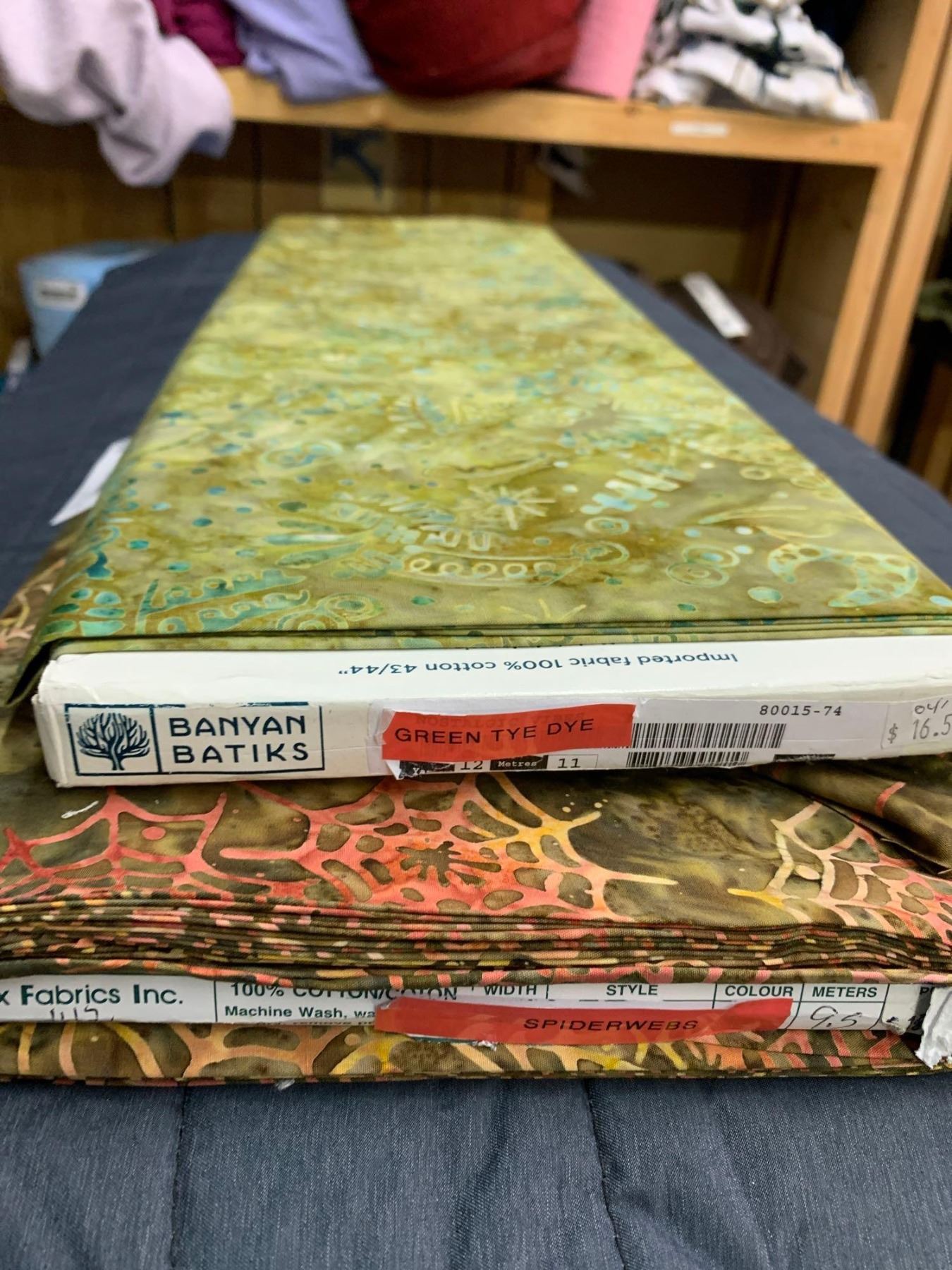 Assorted Bolts of Fabric- Green Tye Dye, Spiderwebs (approx 12m)