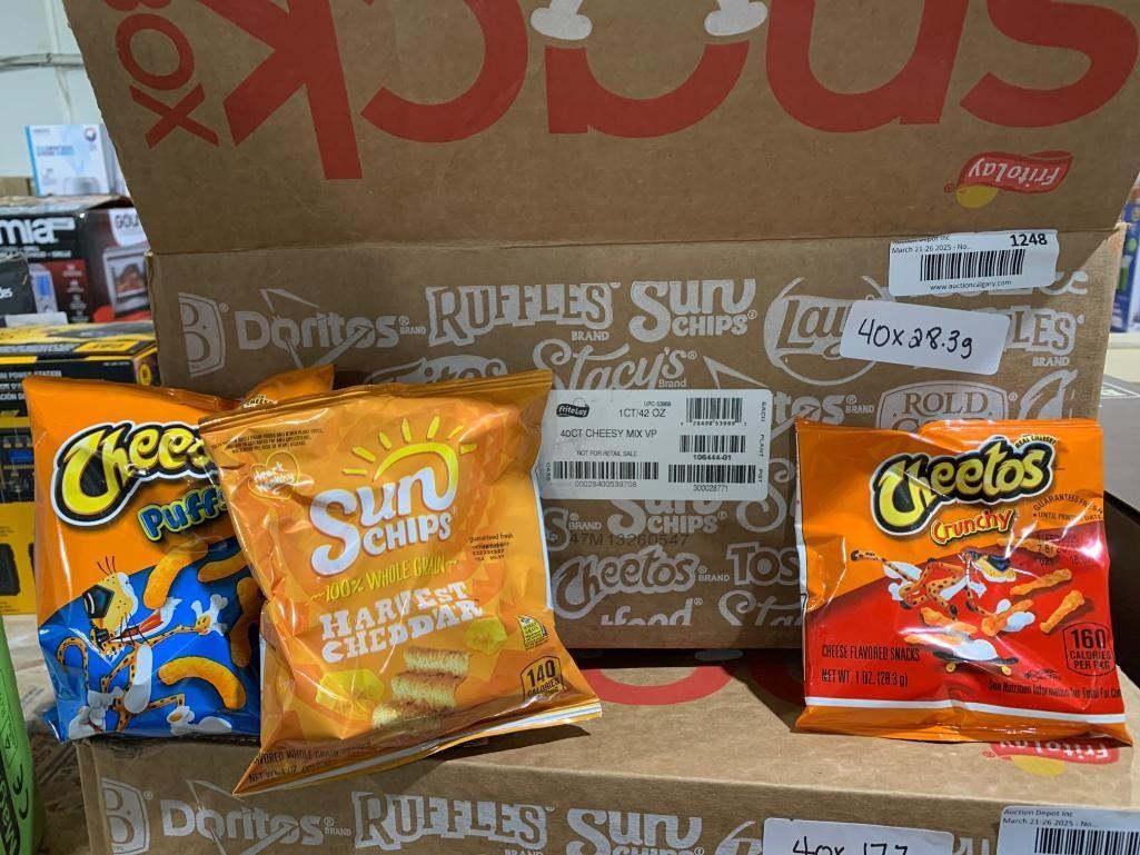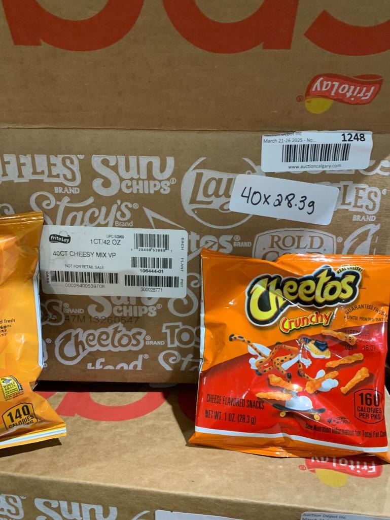 Assorted Cheetos and Sun Chips Bags with 40 Units Per Box