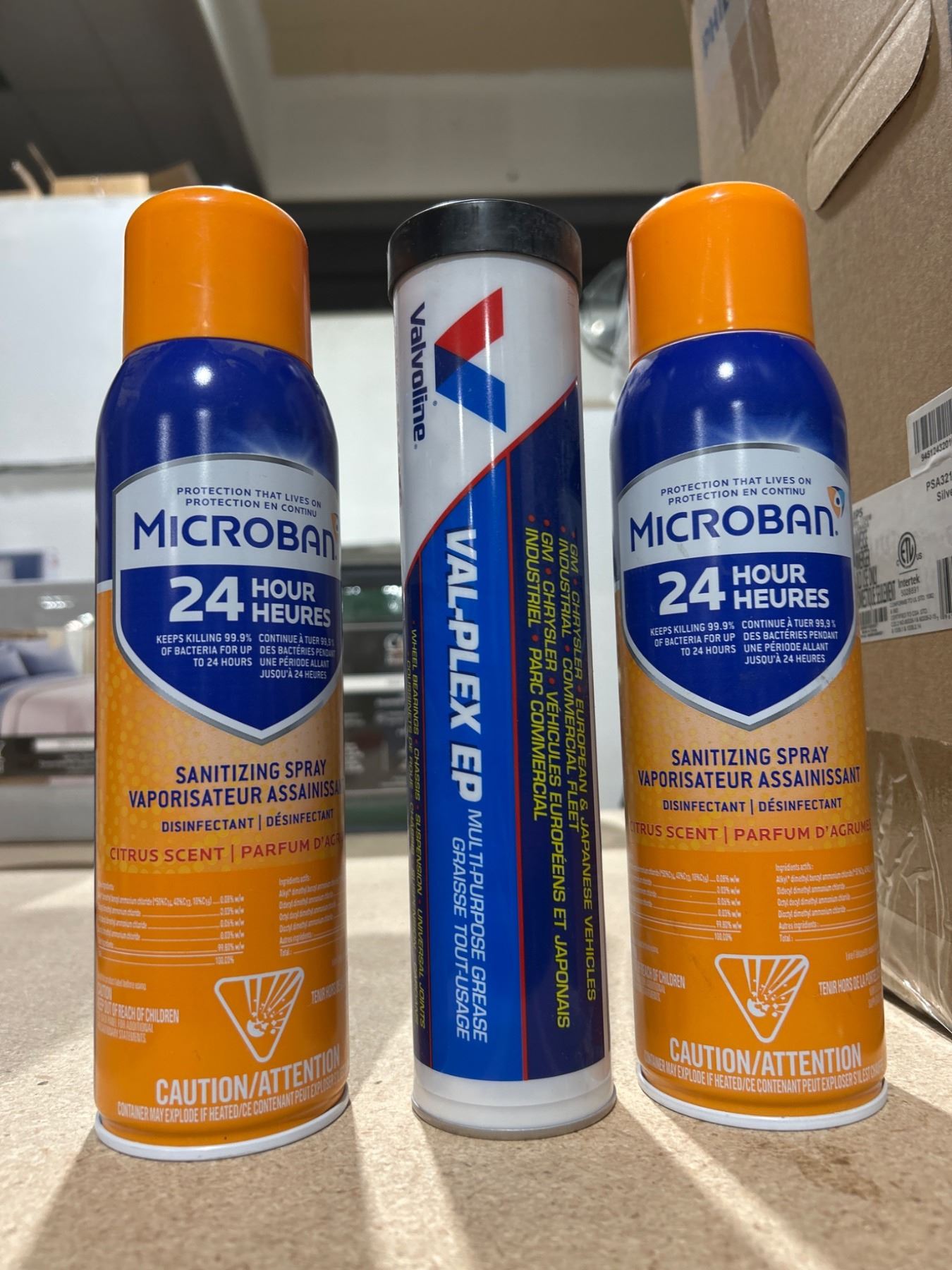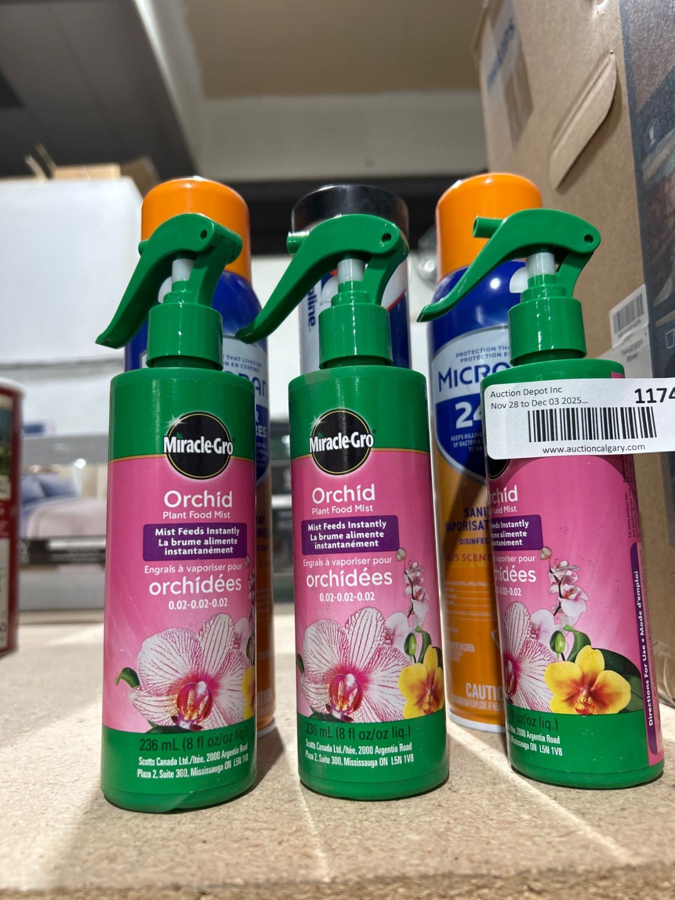 Assorted Lot of Miracle-Gro Orchid Food Spray, Microban Sanitizing Spray, and Valvoline EP Grease