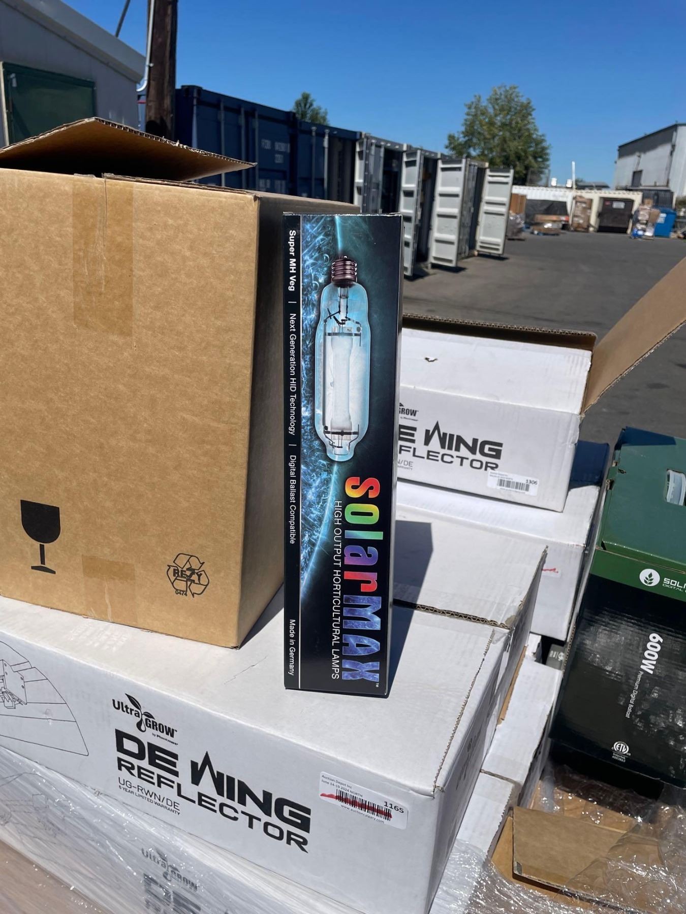 Assorted Skids of Grow Light Equipment - 600W Digital Ballast, De Wing Reflector (Single and Dual) and SolarMax High Output Horticultural Lamps