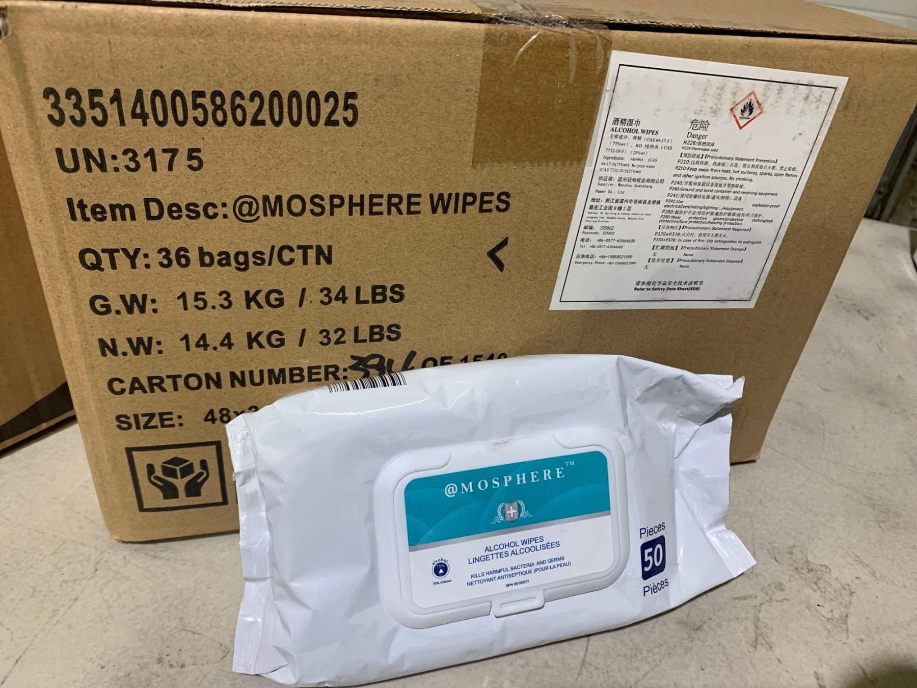 Atmosphere Anticeptic Alcohol Surface Wipes - Case lot of 36 x 50