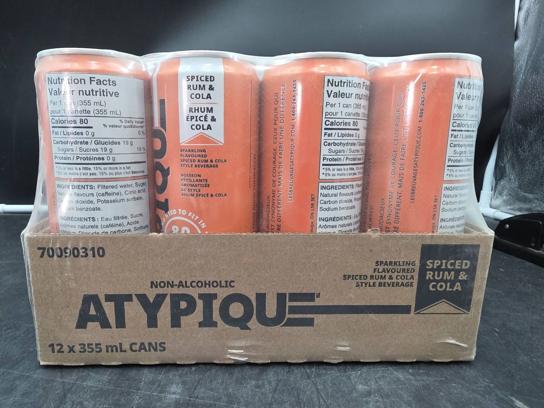 Atypique Spiced Rum and Cola Non-Alcoholic Beverage, 12 x 355mL Cans