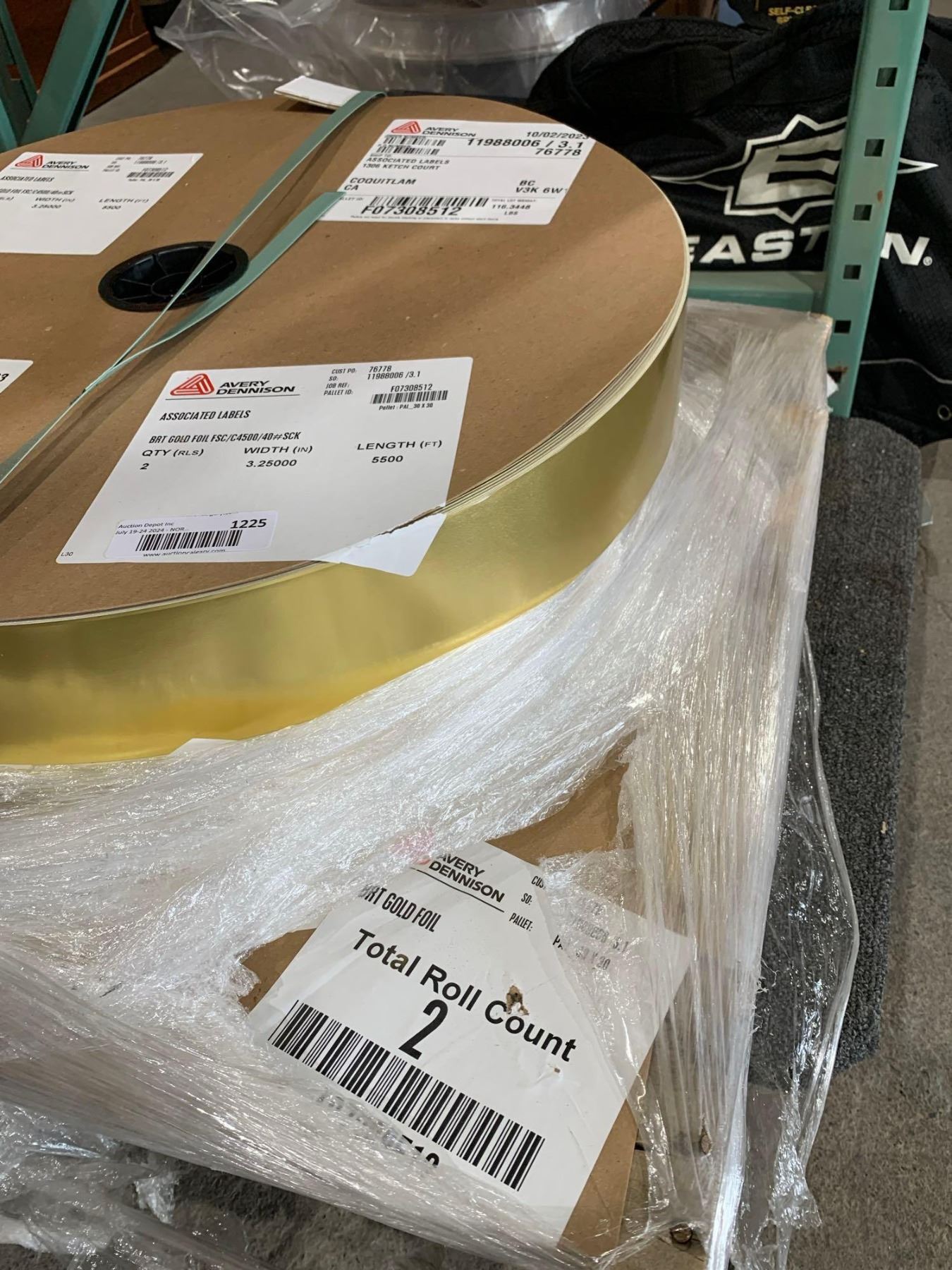Avery Dennison BRT Gold Foil 3.25 Inches x 5500 Feet x's 2 Rolls   FSC/C4500/40#SCK