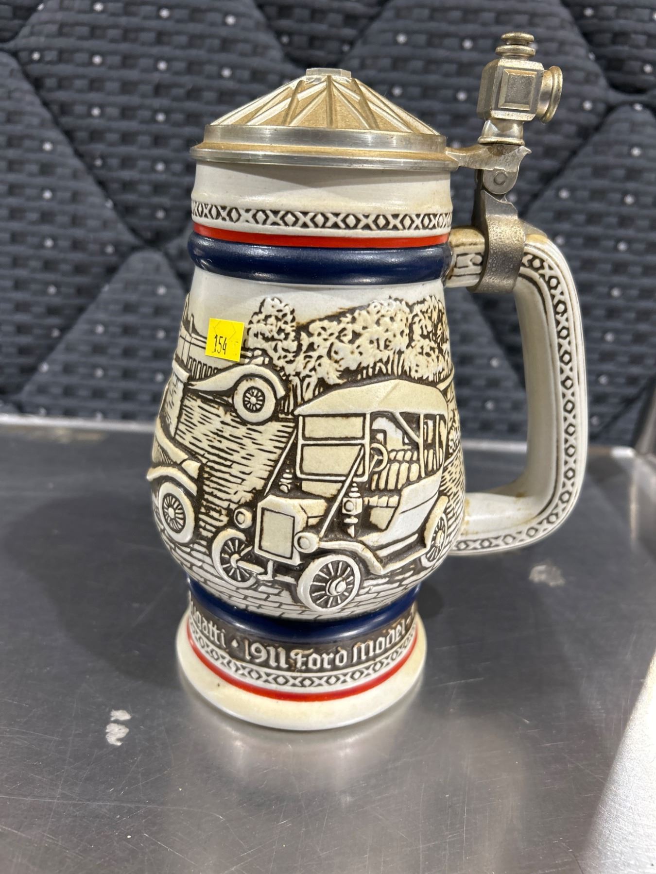 Avon Beer Stein 1979 with 1910 Stanley Steamer, 1911 Ford Model-T