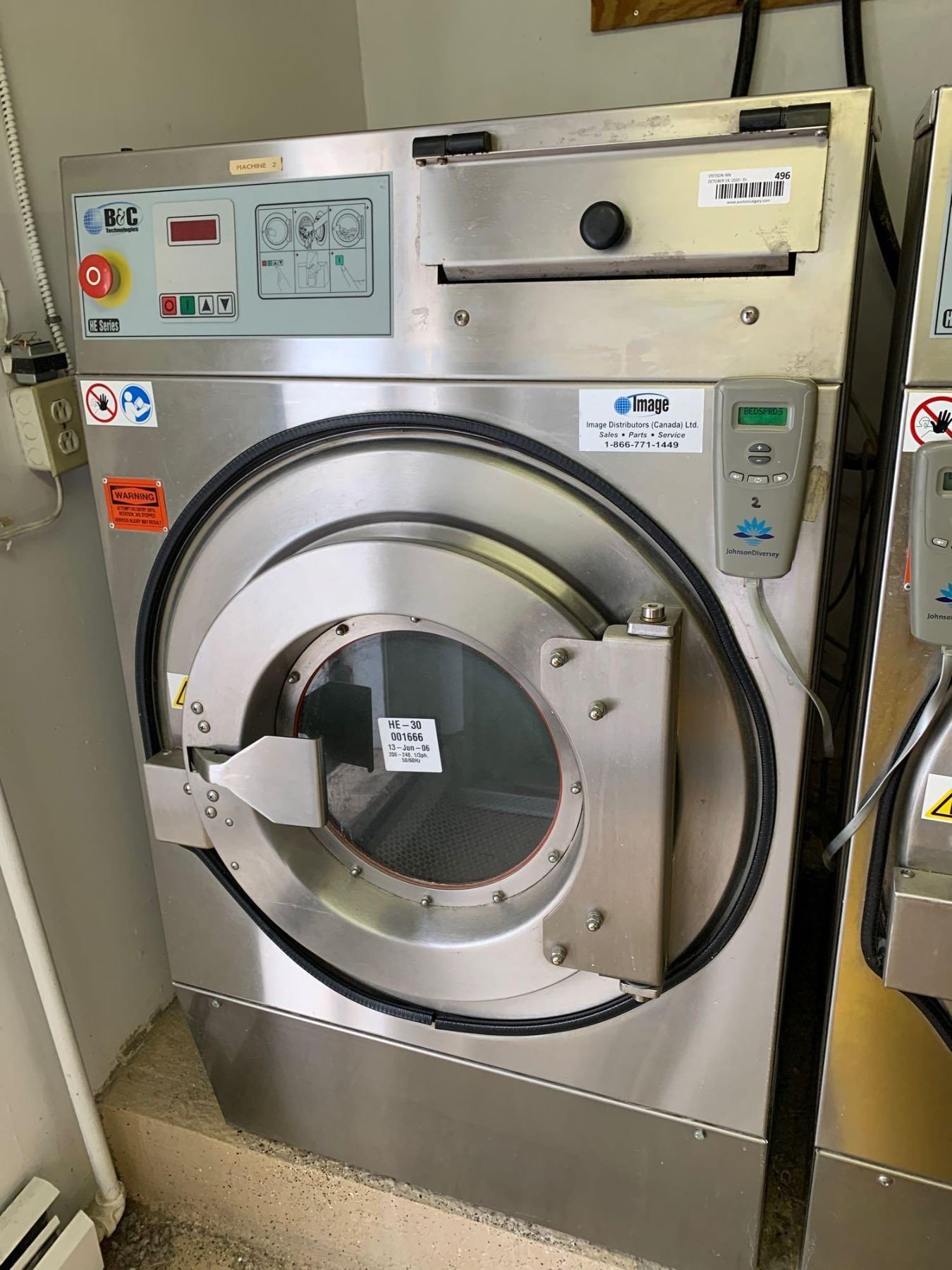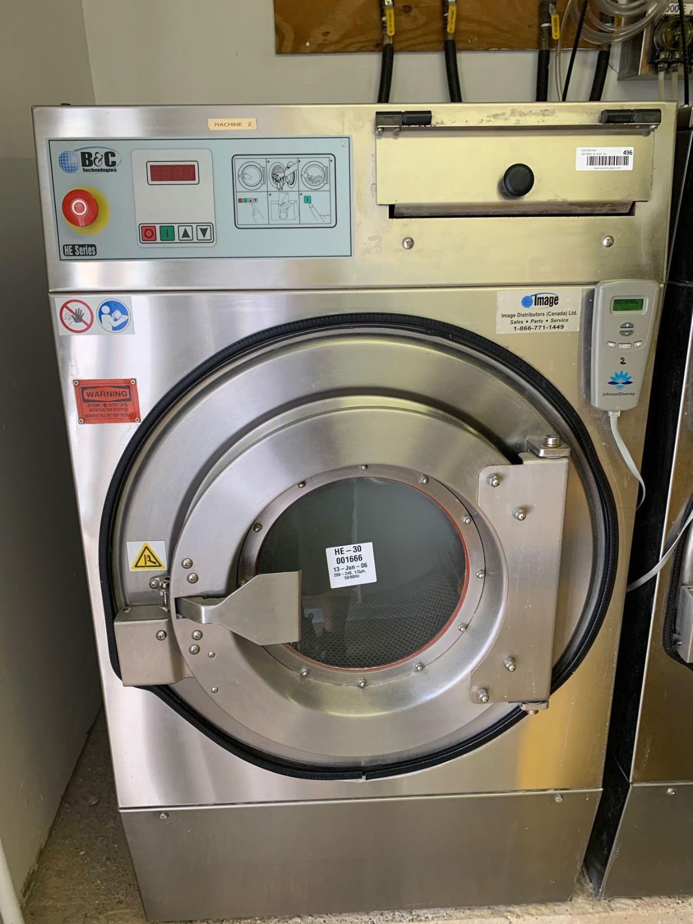 B&C Technologies Commercial High Efficiency SS front load 30 LBS industrial washing machine Model HE-O-B2-24ANN-ABA includes breaker box.