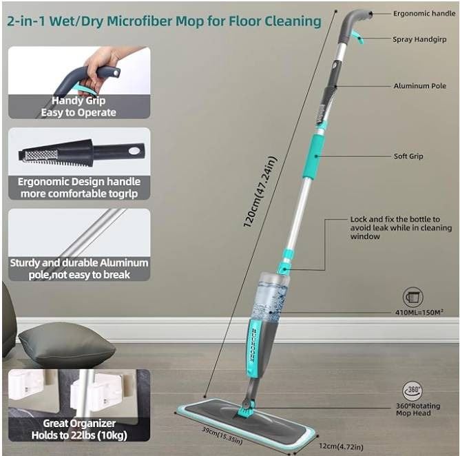 B.D. 2-in-1 Spray Mop And Window Squeegee Set With 410ML Bottle