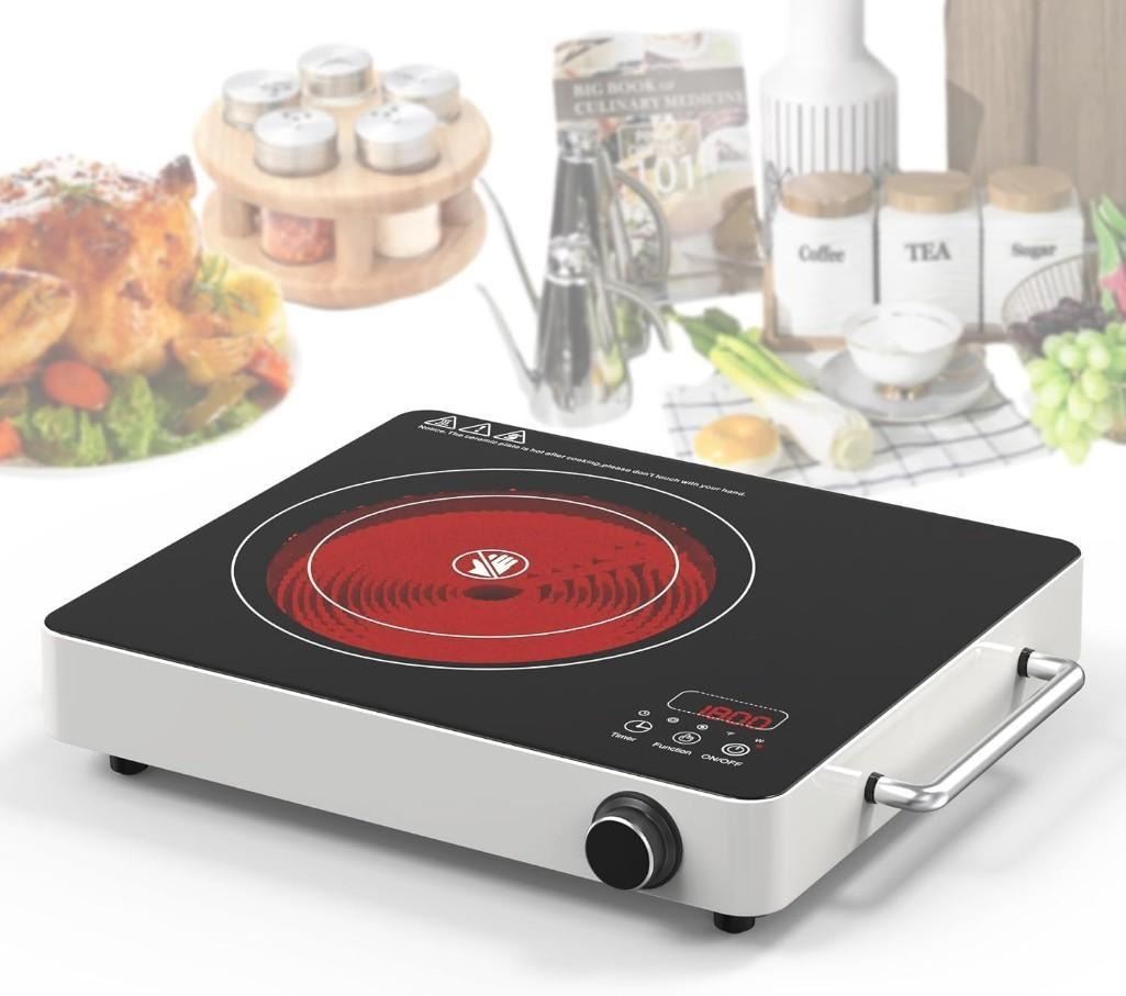 BGK Electric Cooktop,120V 1800W Electric Stove Top with Knob Control,9 Power Levels, Kids Lock & Timer, Hot Surface Indicator, Overheat Protection,12 Inch Built-in Radiant Double Induction Cooktop