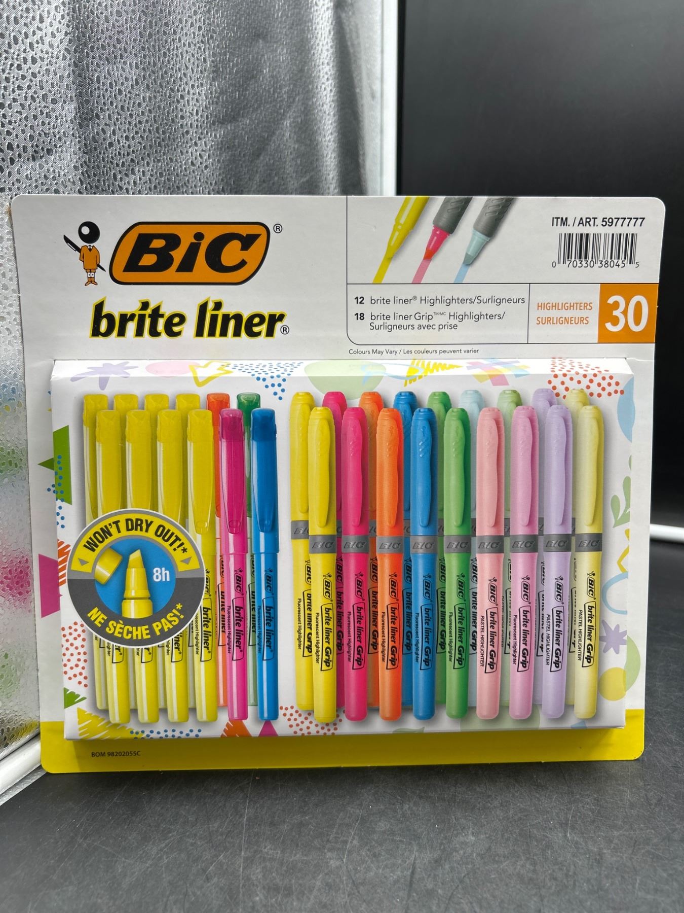 BIC Brite Liner Bright Grip Highlighter Set, 30-Count