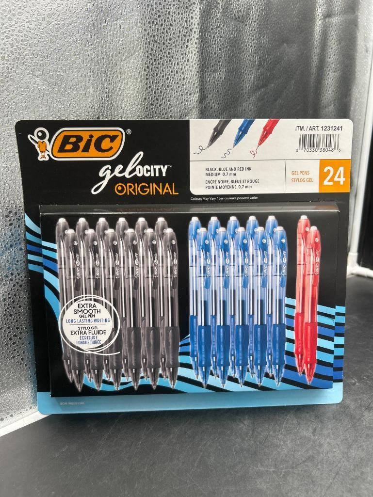 BIC Gel-ocity Gel Pens, 24-Count, Black, Blue, and Red Ink