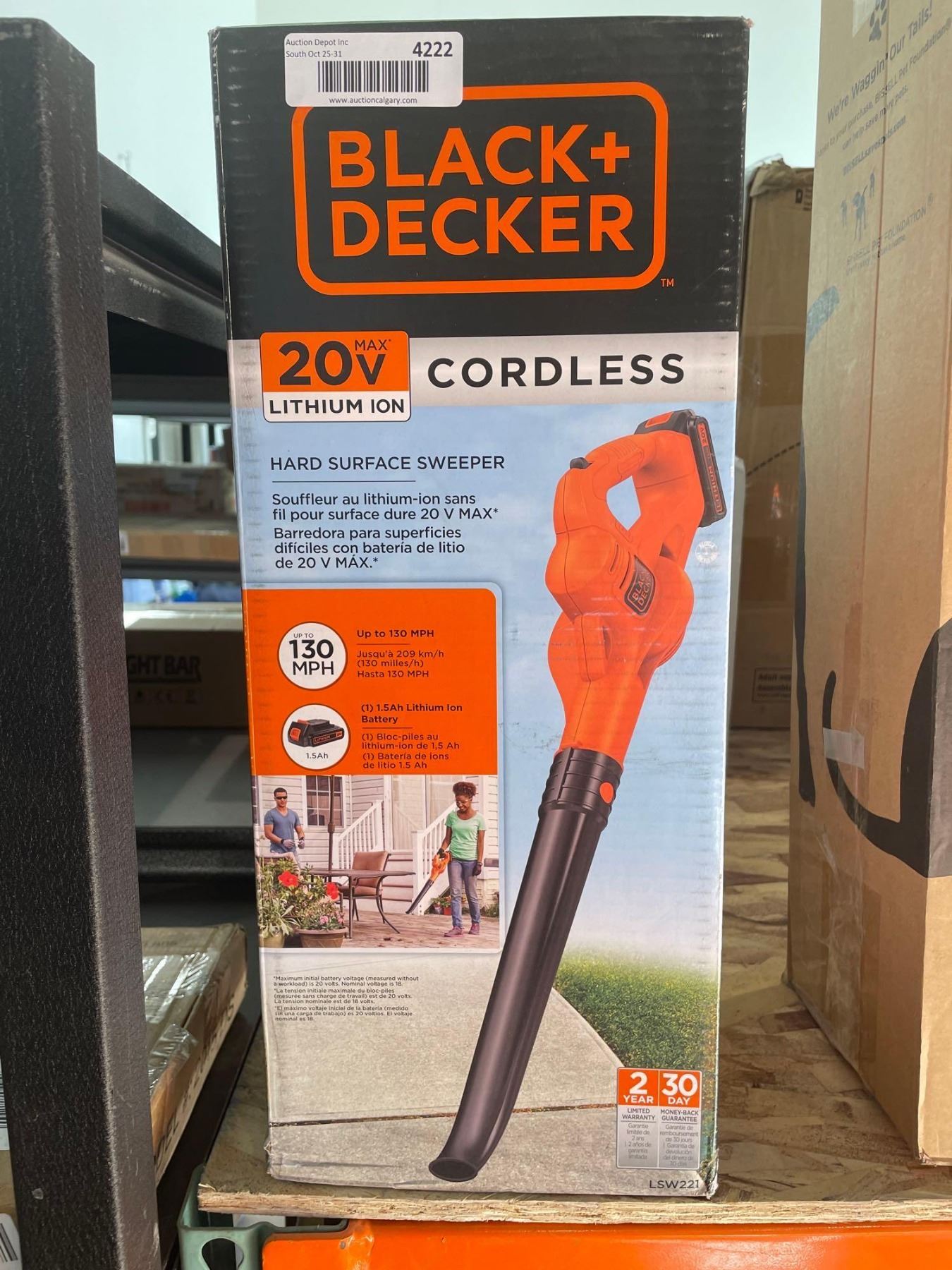 BLACK+DECKER 20V MAX Cordless Blower, 130 MPH, Lightweight Sweeper for Hard Surfaces and Mulched Areas (LSW221-CA)