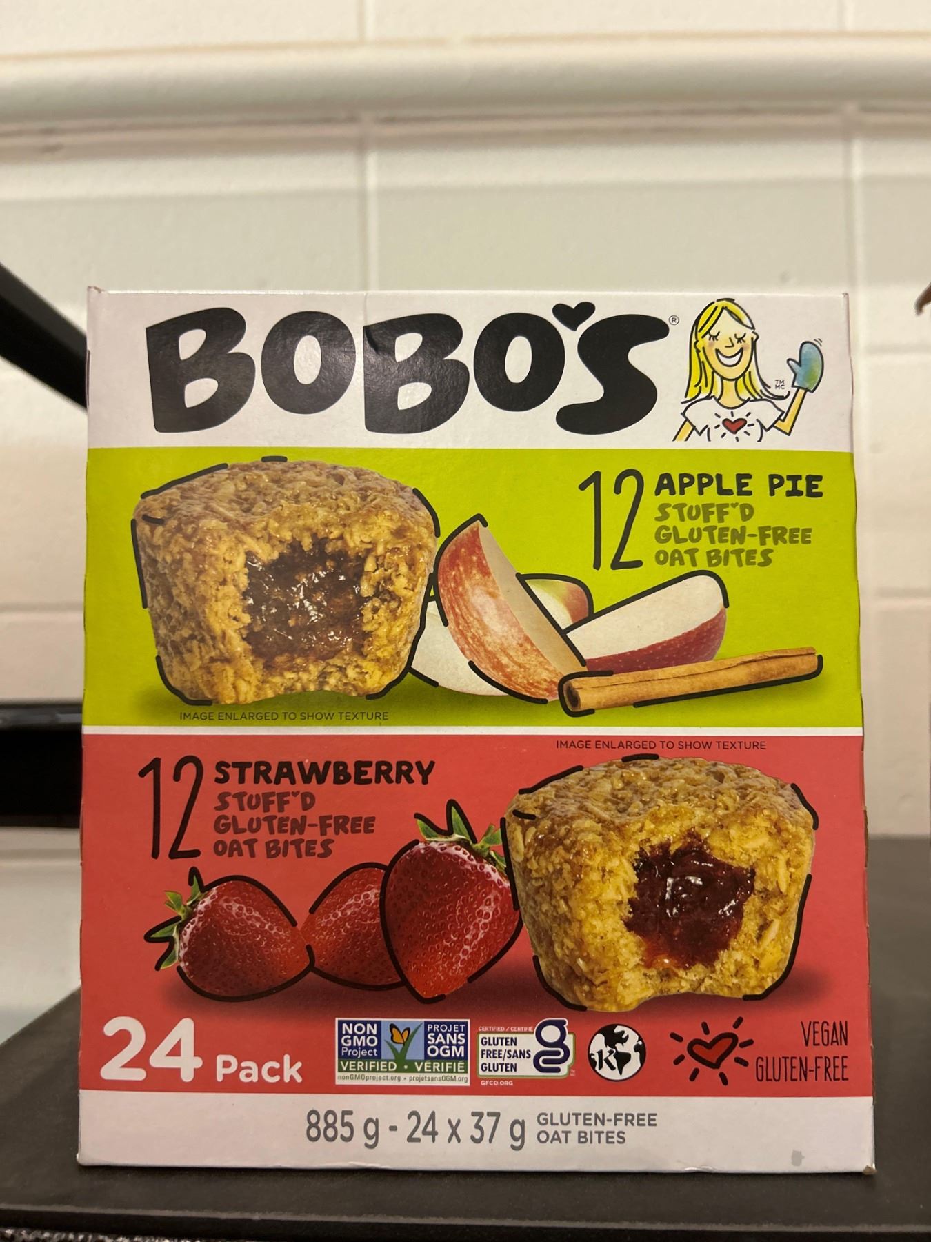 BOBO'S apple pie and strawberry stuffed oat bites 24x37g