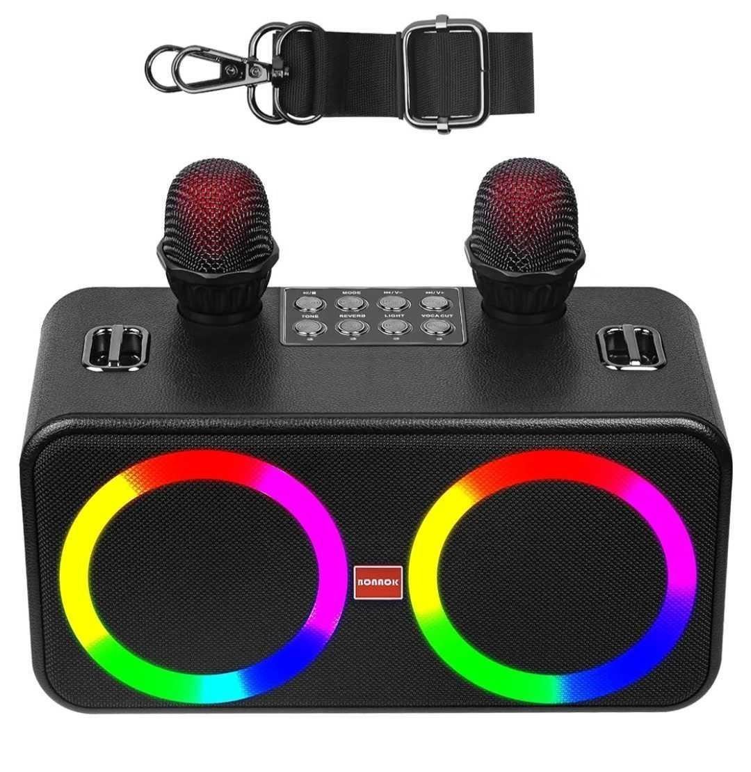 BONAOK Karaoke Machine for Kids Adults, Protable Bluetooth Speaker with Two Wireless Microphones, LED Light for Party Indoor/Outdoor, for Boys and Girls Family, Birthday (T-30)