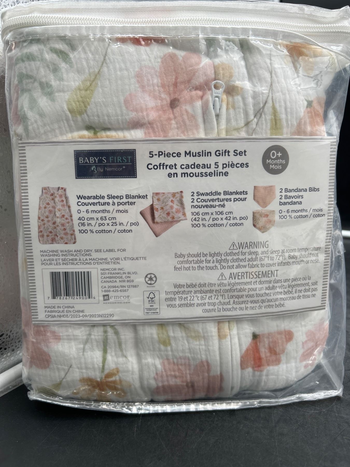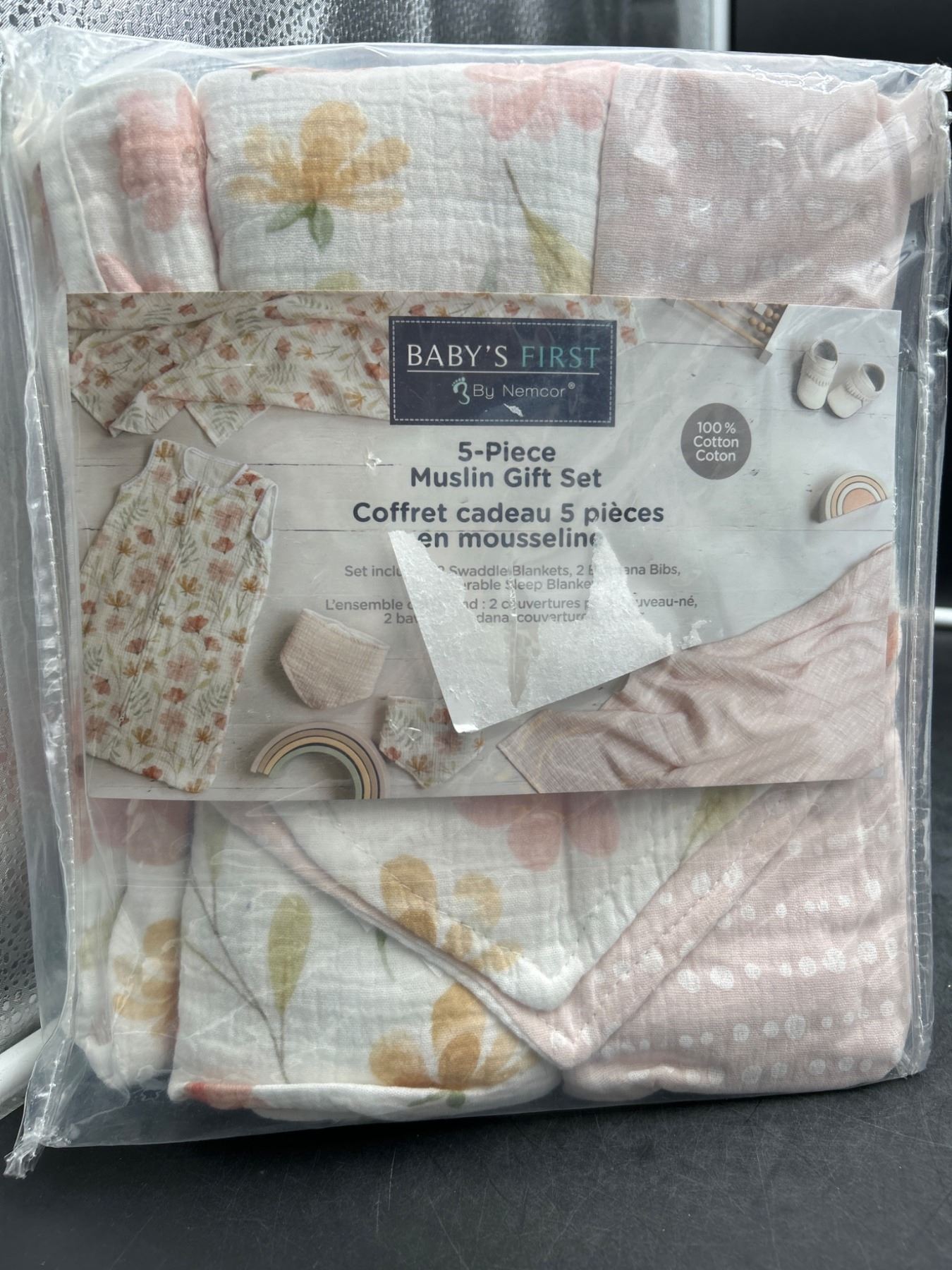 Baby’s First 5-Piece Muslin Gift Set with Sleep Blanket and Swaddle Blankets
