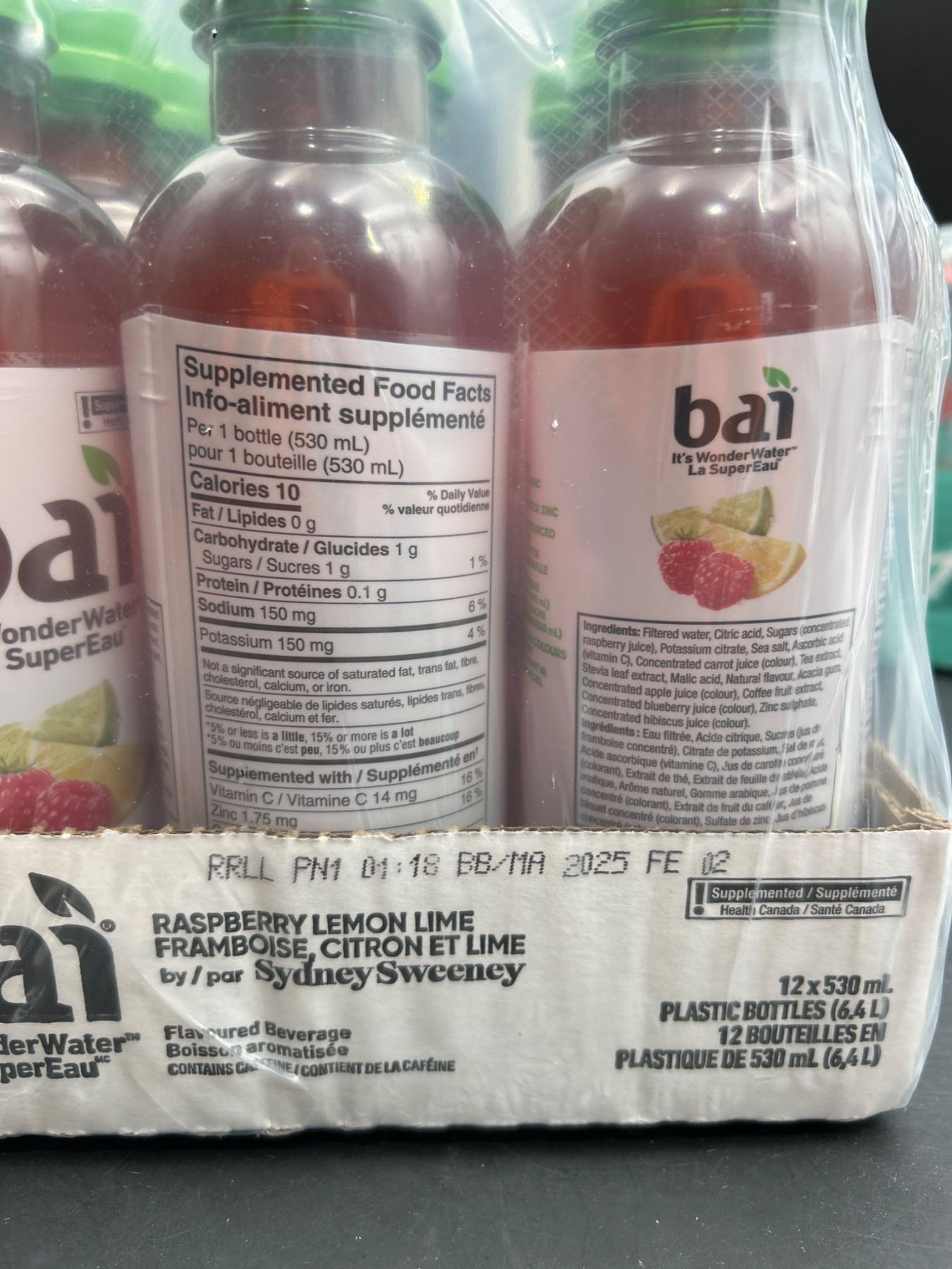 Bai Raspberry Lemon Lime Flavored Beverage, 12 Bottles (530ml Each)