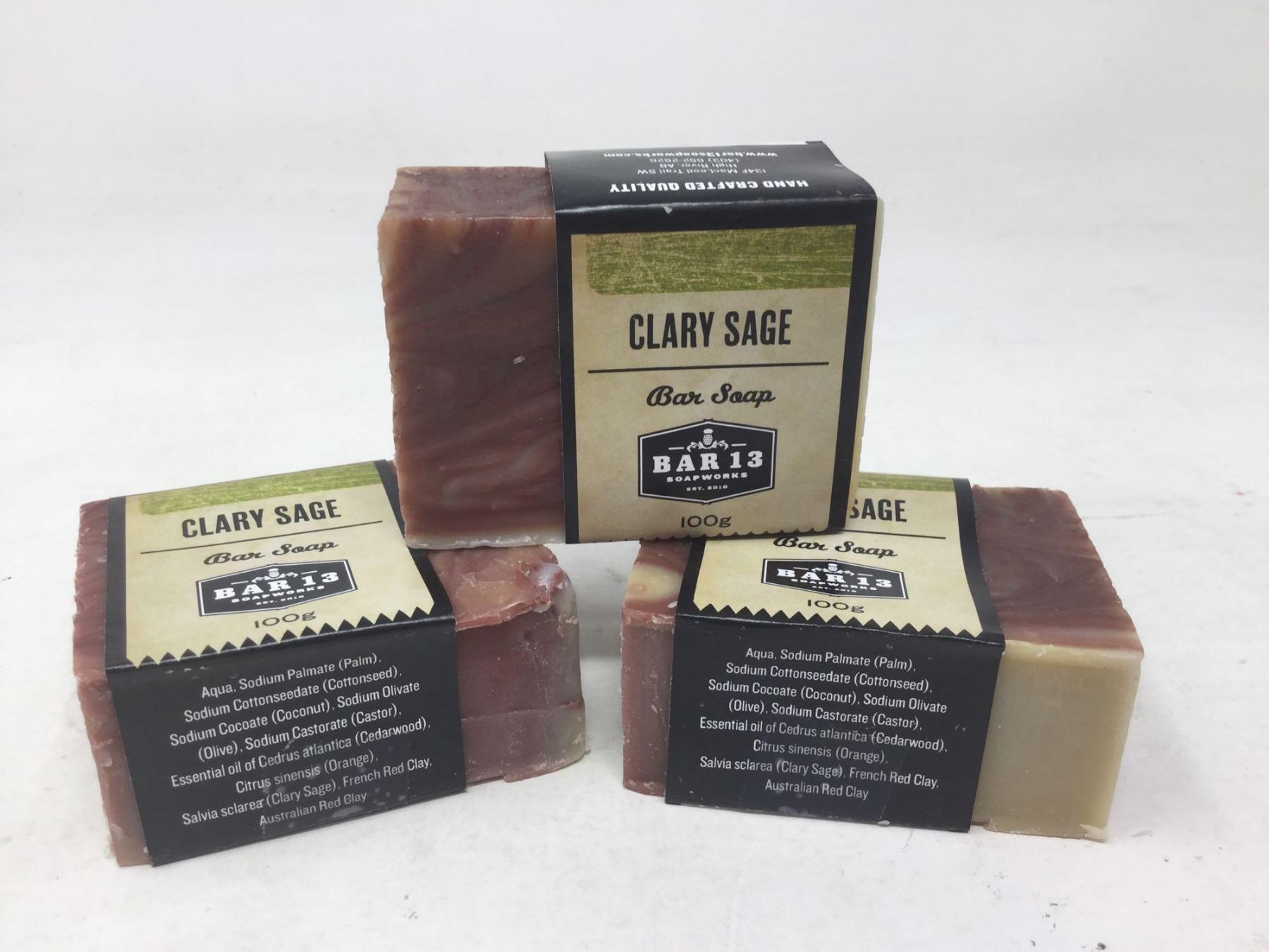 Bar 13 Soapworks Bar Soap- Clary Sage (3 x 100g)