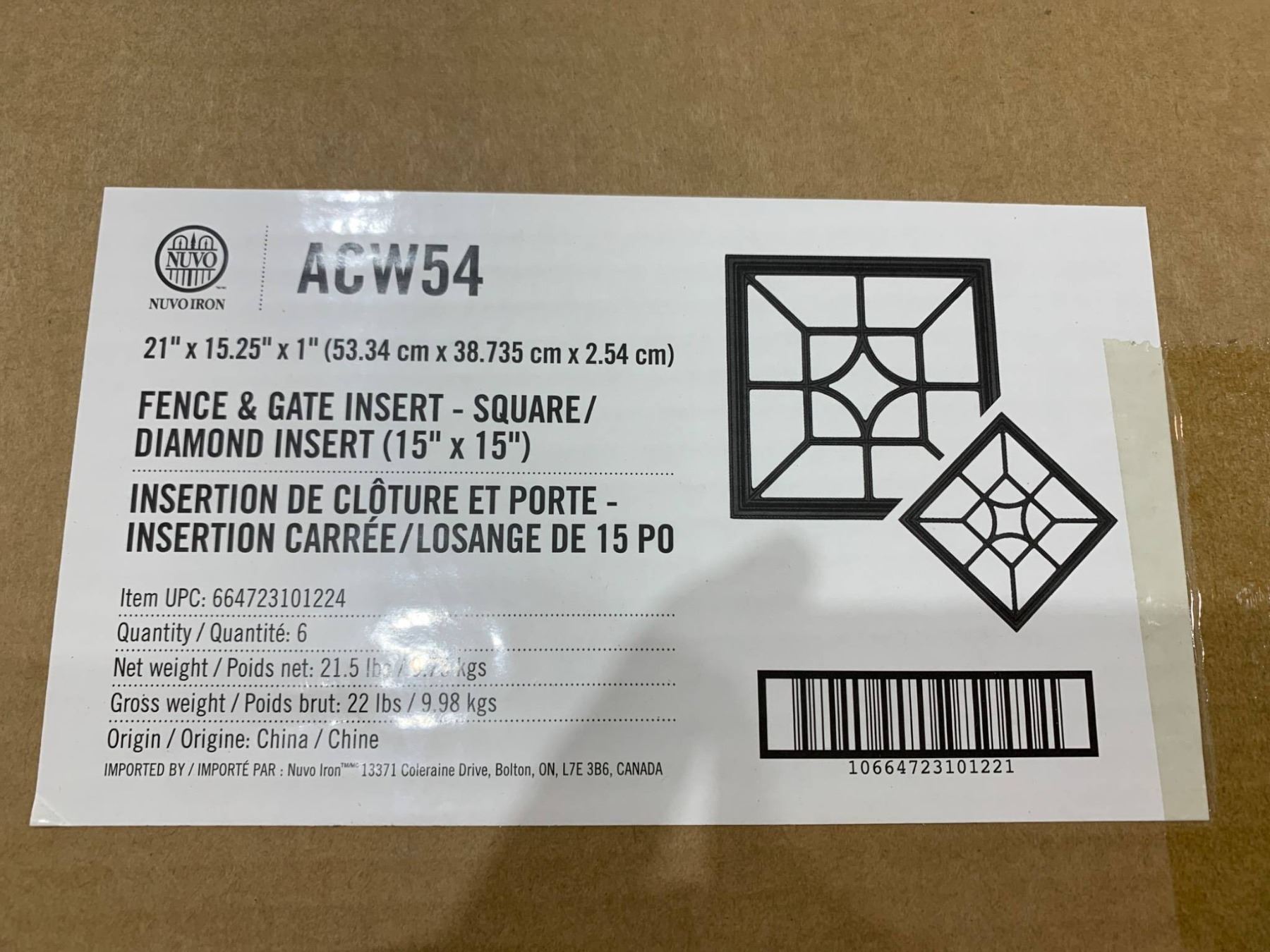 Barrette ACW54 Fence Gate Insert with Diamond Pattern, 15 Inch x 21 Inch