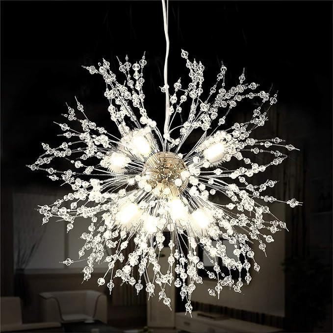 Baycheer Firework Chandeliers,LED Crystal Modern Pendant Lighting with 8 Lights,Stanless Steel Ceiling Light Fixtures Pendant Lamp for Living Room Bedroon Restaurant,Dia15.7 inch,Chrome - May not be exactly as shown in stock photo