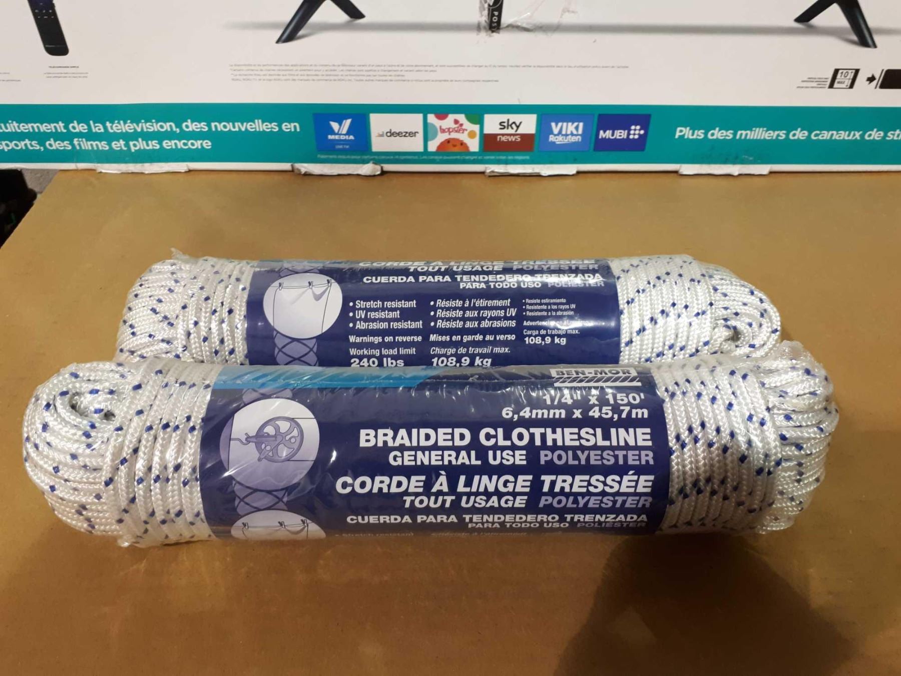 Ben-Mor Polyester Braided Clothesline 1/4" x 150' Lot of 2
