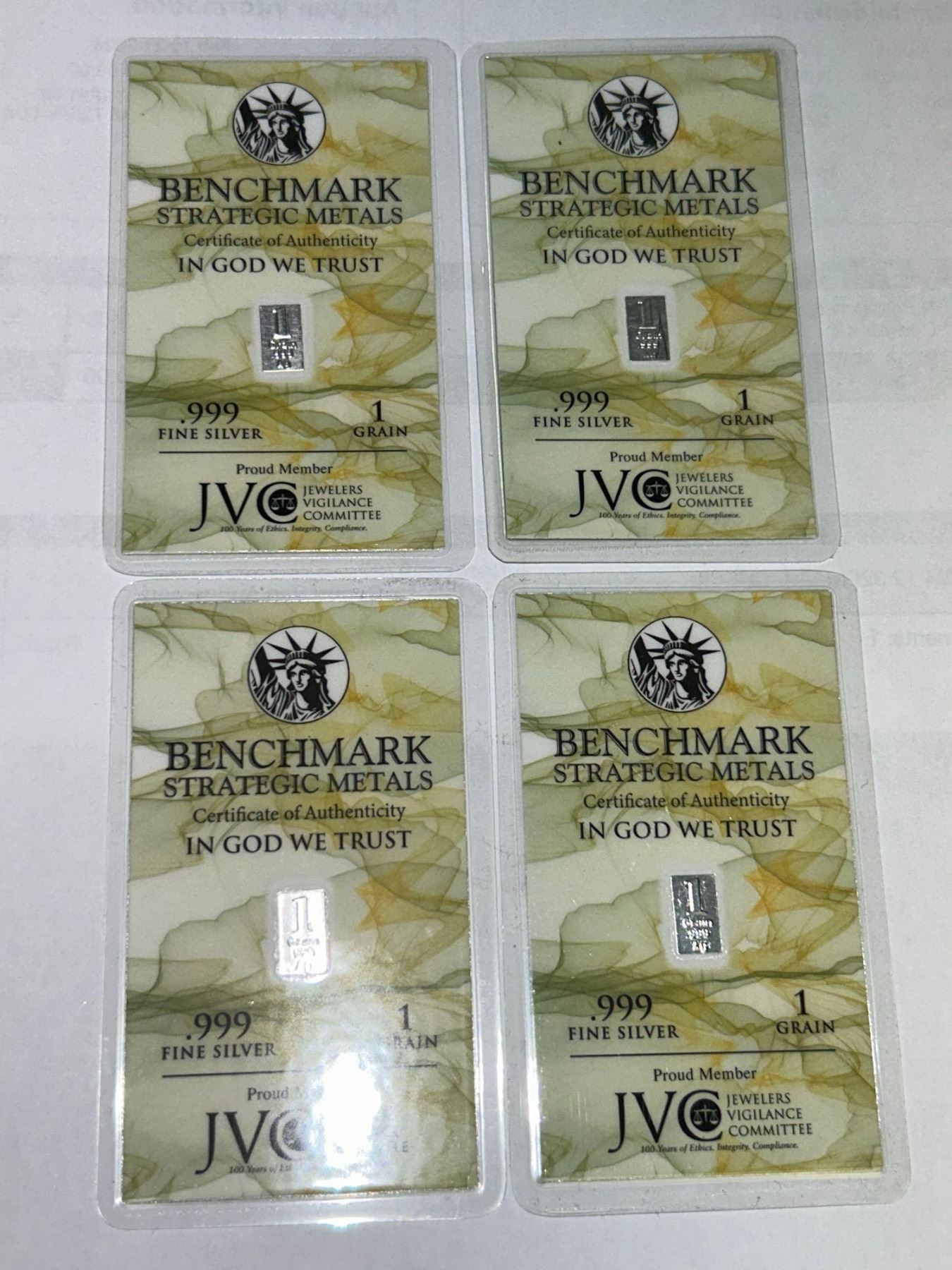 Benchmark Strategic Metals 1 Grain .999 Fine Silver Wafer Bar Lot of 4