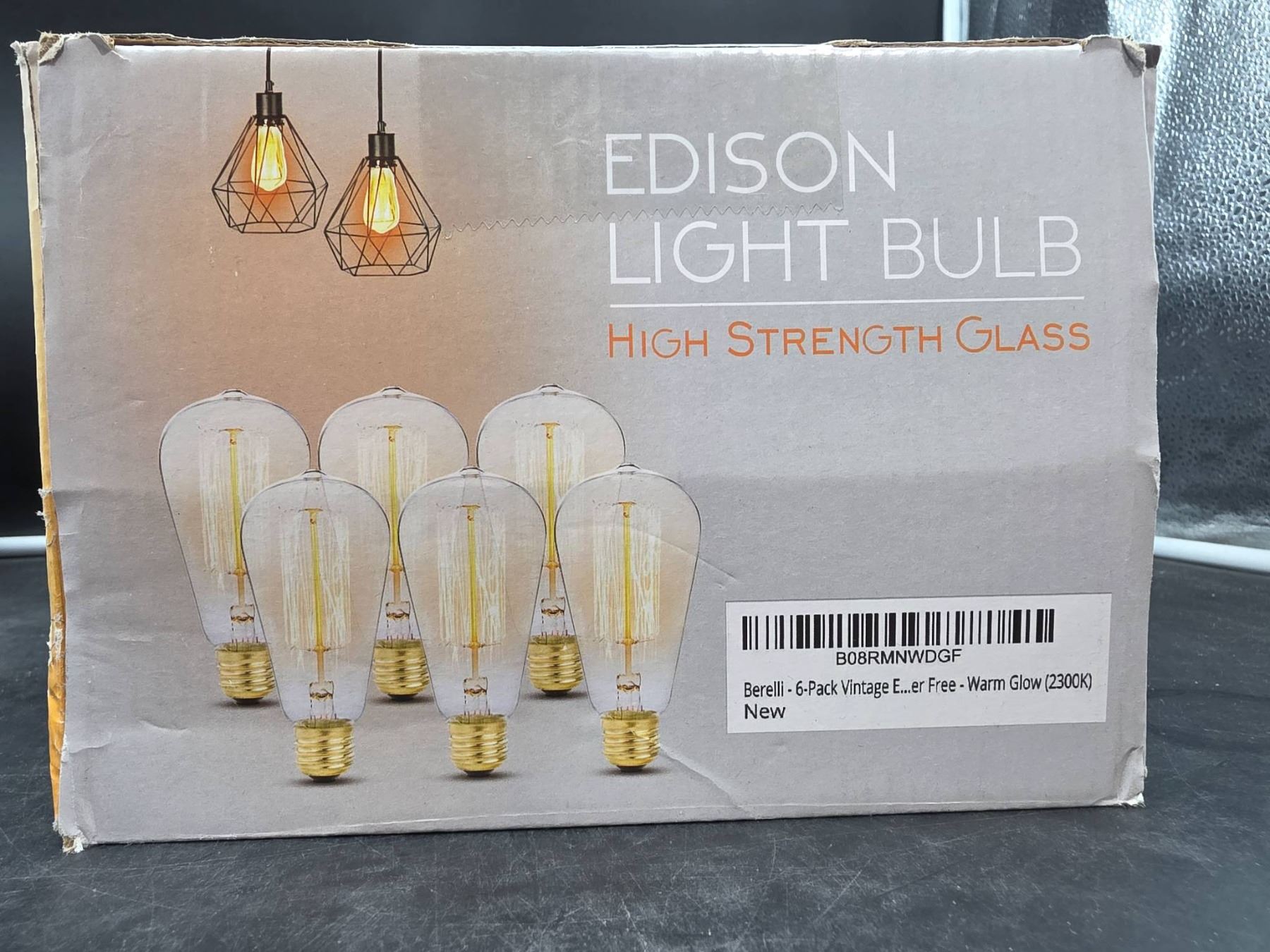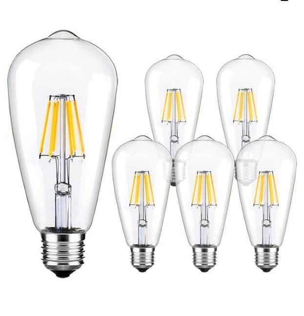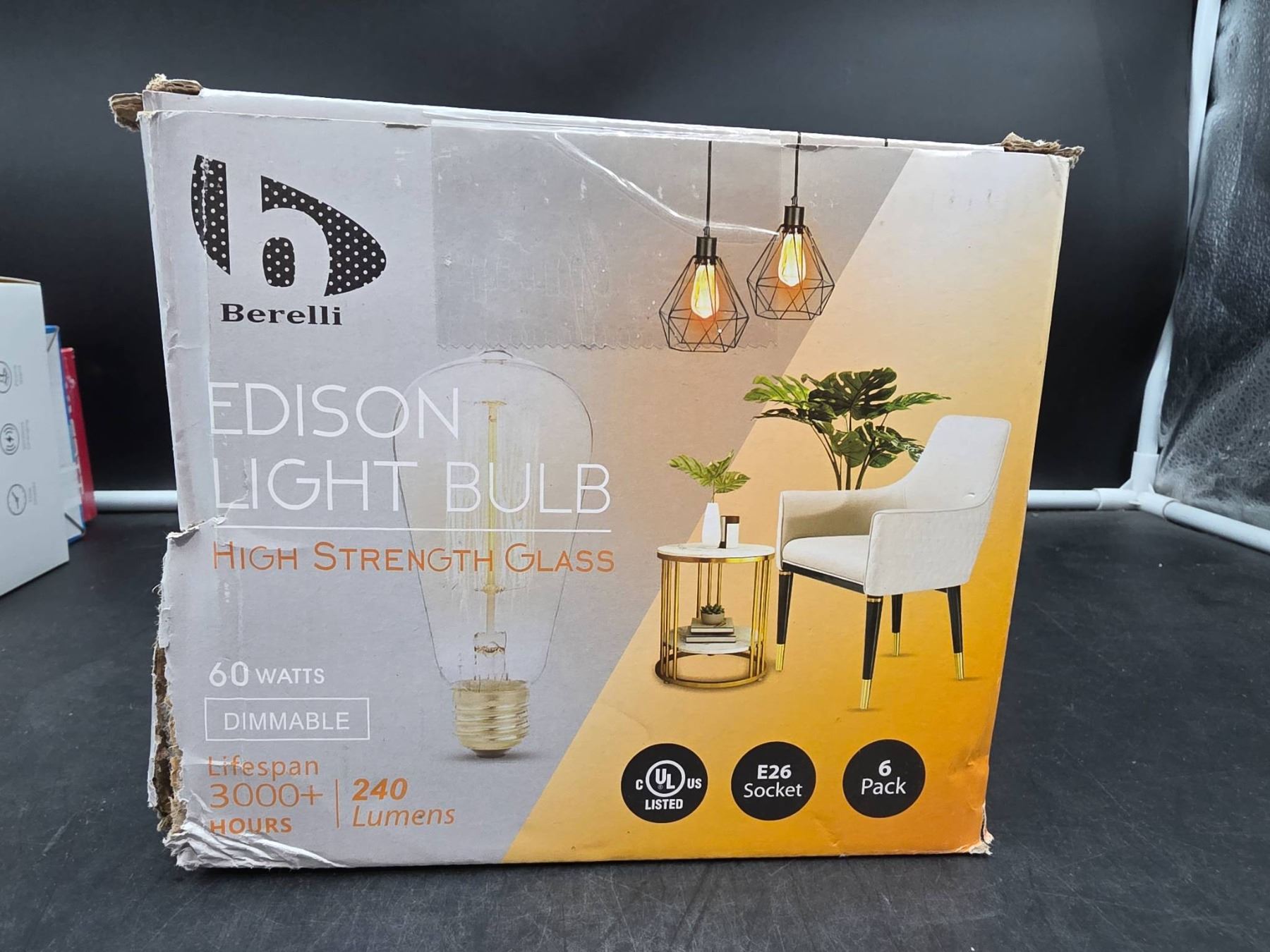 Berelli Edison Light Bulb, 60W, Dimmable, E26 Socket, 240 Lumens, 6 Pack