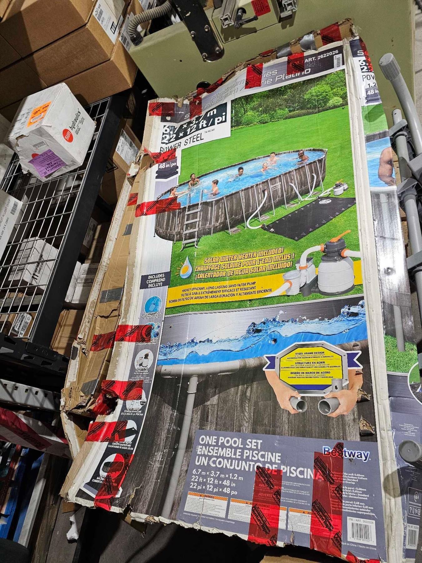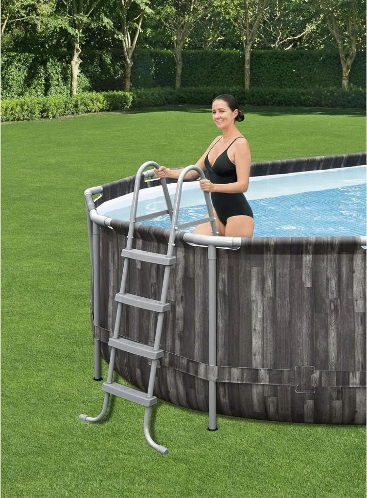 Bestway - 22 Foot x 12 Foot x 48 Inches Power Steel Frame Above Ground Swimming Pool Set with Filter Pump, Ladder, Cover, and Chemical Dispenser