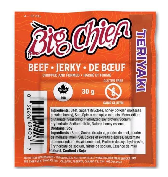 Big Chief Beef Jerky Teriyaki Flavor 30 Packs of 30g Each