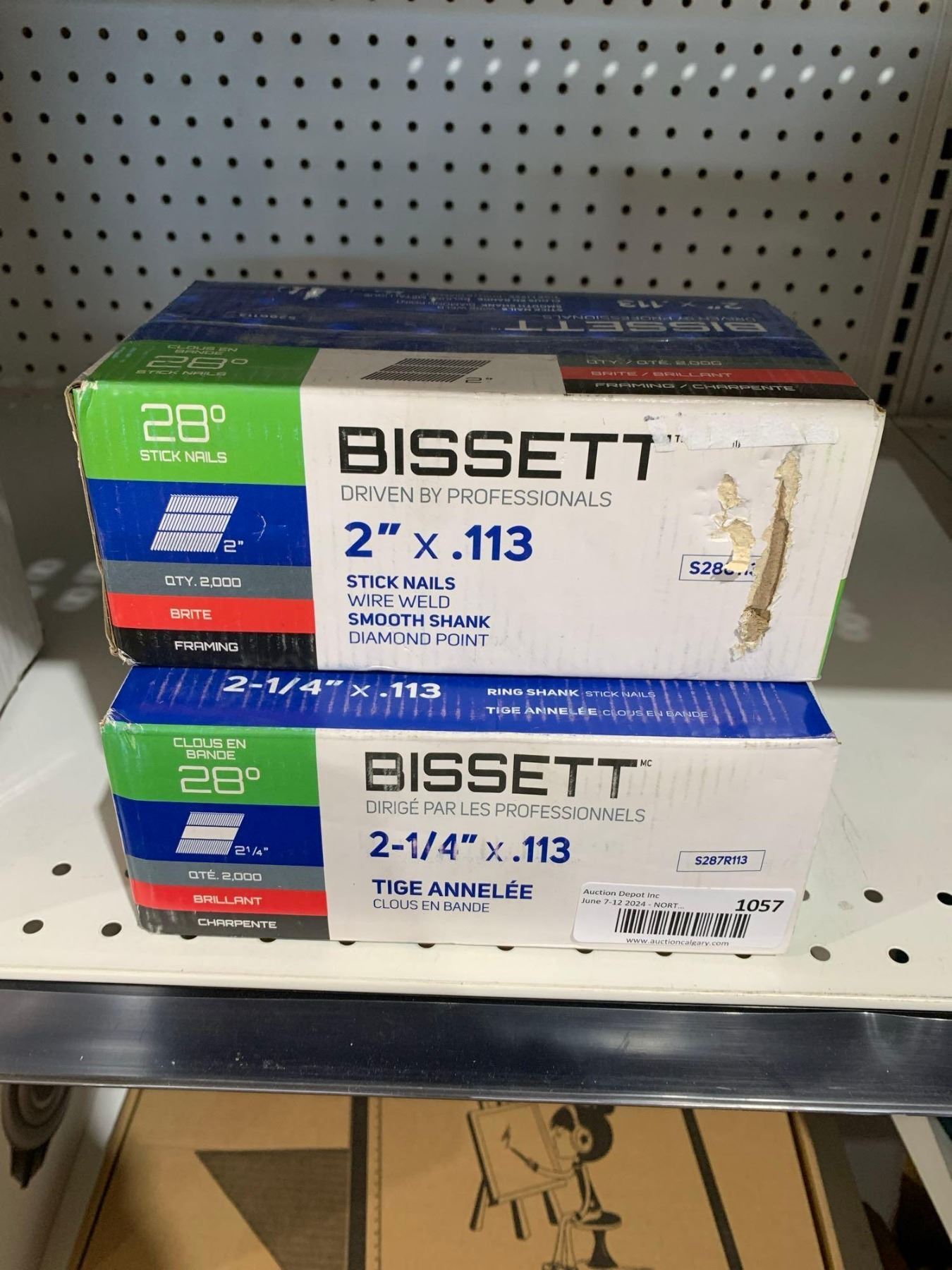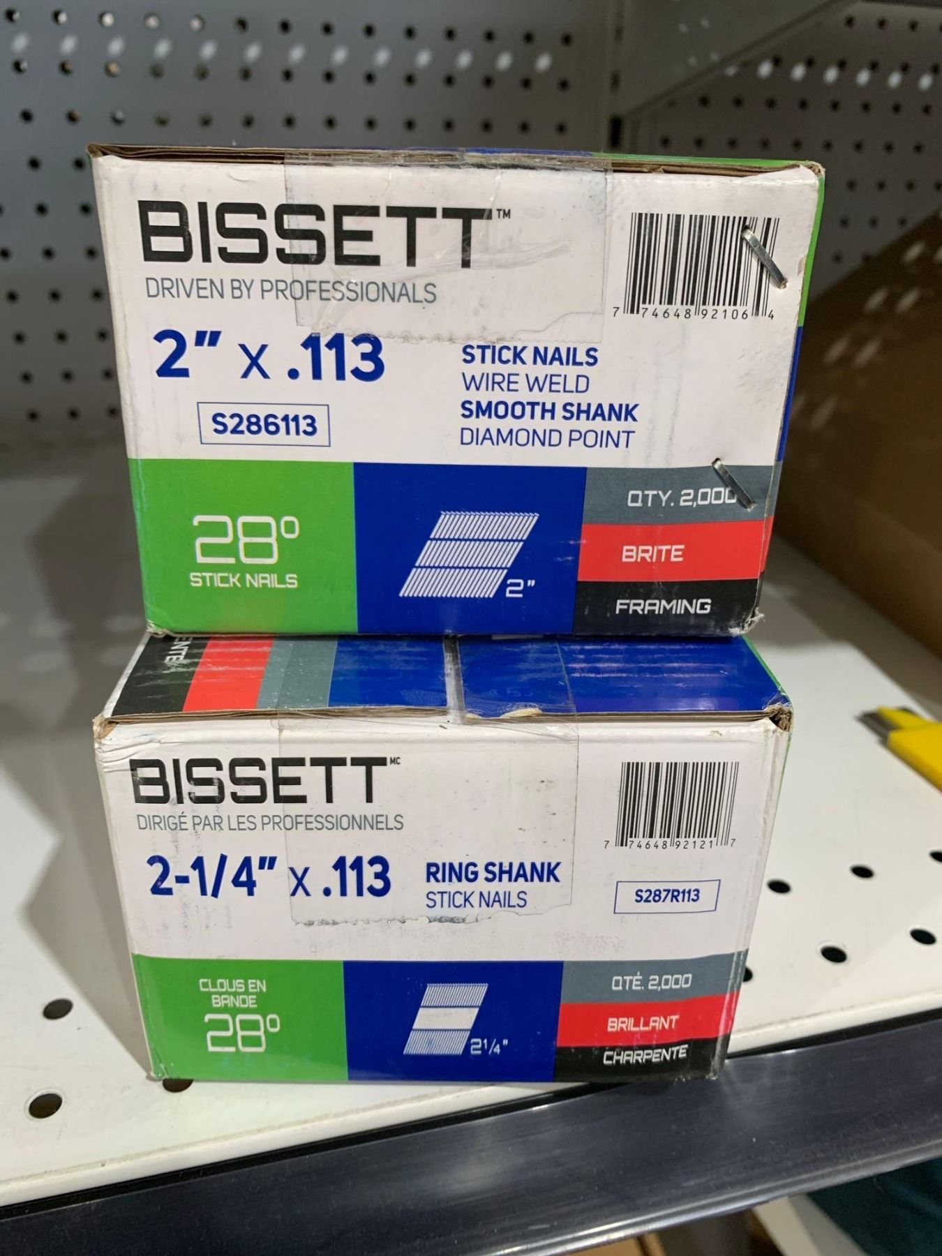 Bissett 28° 2"x.113 Stick Nails Wire Weld Smooth Shank Diamond Point Qty 2000 AND 2-1/4"x.113 Ring Shank Stick nails Qty 2000